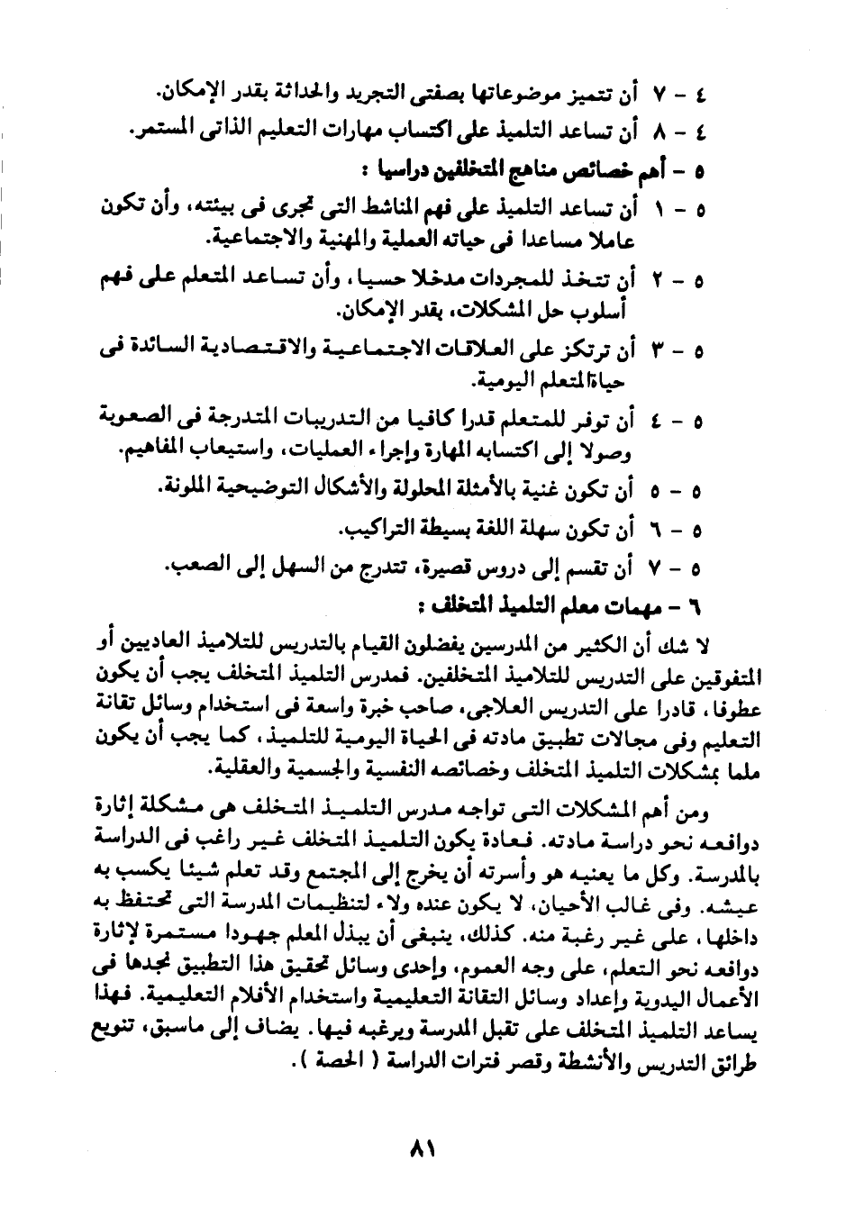 خامسًا: أهم خصائص مناهج المتخلفين دراسيا: