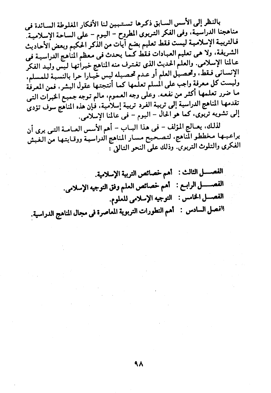 لذلك يالج المؤلف -في هذا الباب- أهم الأسس العامة التي يرى أن يراعيها مخططو المناهج، لتصحيح مسار المناهج الدراسية ووقايتها من الغبش الفكري والتلوث التربوي، وذلك على النحو التالي: