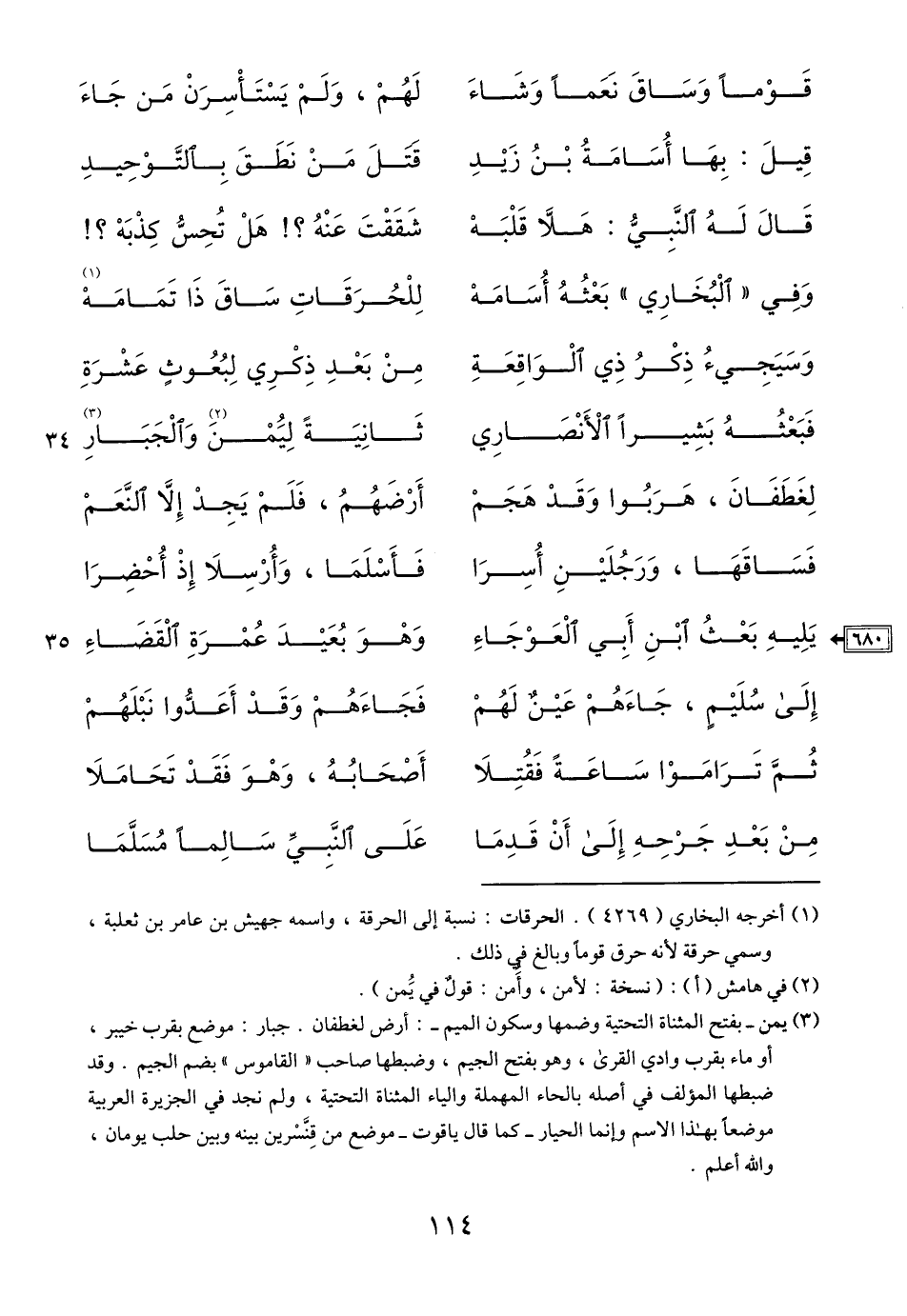 (3) يمن- بفتح المثناة التحتية وضمها وسكون الميم-: أرض لغطفان. جبار: موضع بقرب خيبر، أو ماء بقرب وادي القرى، وهو بفتح الجيم، وضبطها صاحب «القاموس» بضم الجيم. وقد ضبطها المؤلف في أصله بالحاء المهملة والياء المثناة التحتية، ولم نجد في الجزيرة العربية موضعا بهذا الاسم وإنما الحيار- كما قال ياقوت- موضع من قنّسرين بينه وبين حلب يومان، والله أعلم.
