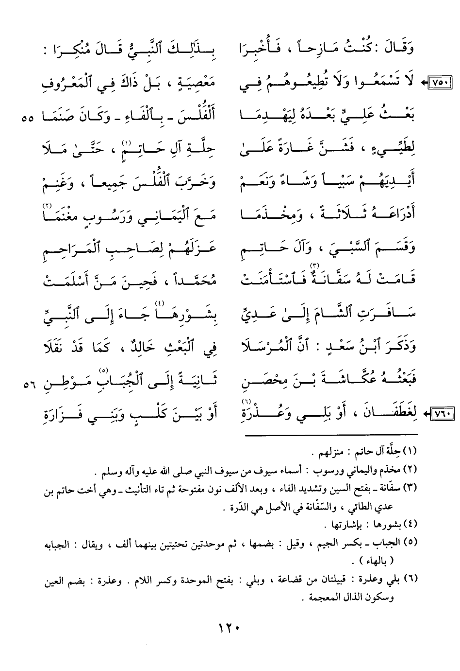 (3) سفّانة- بفتح السين وتشديد الفاء، وبعد الألف نون مفتوحة ثم تاء التأنيث- وهي أخت حاتم بن عدي الطائي، والسّفّانة في الأصل هي الدّرة.