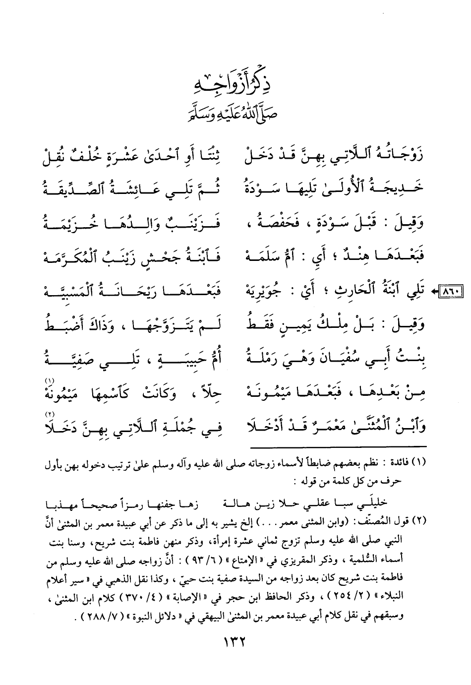 فَبَعْدَهَا هِنْدٌ؛ أيِ: امُّ سَلَمَهْ ... فَابْنَةُ جَحْشٍ زَينبُ المُكَرَّمَهْ
