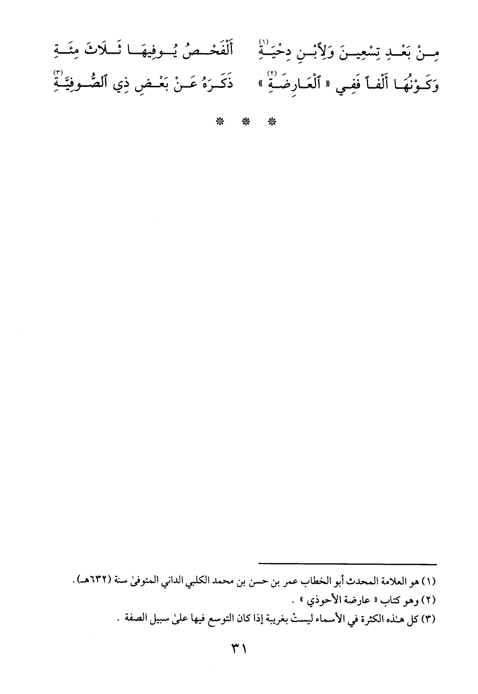 مِنْ بعدِ تسعينَ ولابنِ دِحْيةِ «1» ... الفَحْصَ يُوفِيها ثلاث مئة