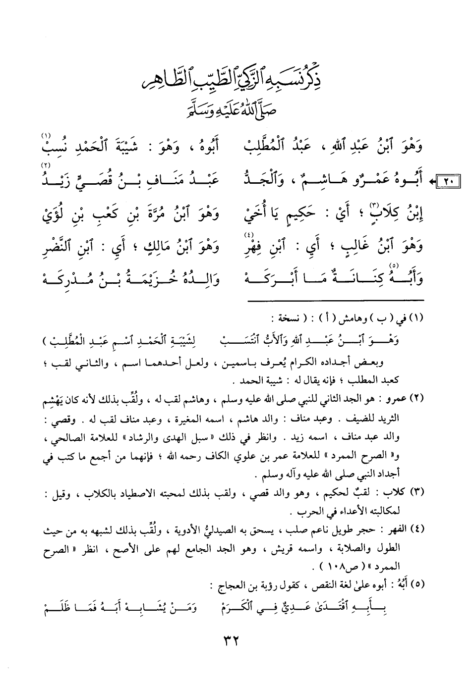 وهْو ابنُ عبدِ الله، عبدُ المطلبْ ... أبوهُ، وهْوَ: شَيبَةَ الحَمْدِ نُسِبْ «1»