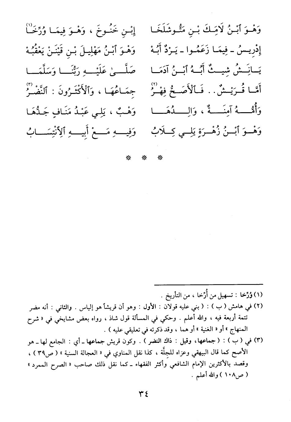 أمَّا قريشٌ.. فالأصحُّ فهر «2» ... جماعها، والأكثرون: النّضر «3»