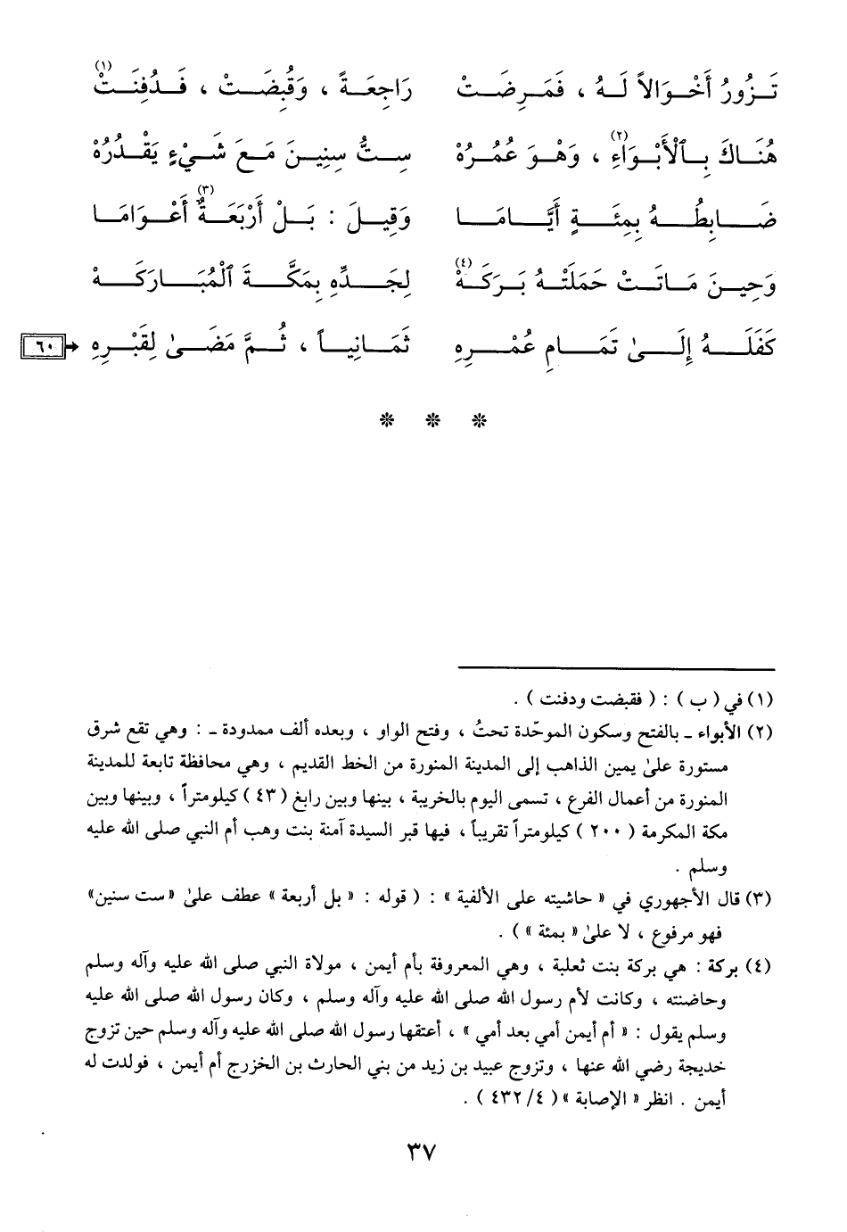 (3) قال الأجهوري في «حاشيته على الألفية» : (قوله: «بل أربعة» عطف على «ست سنين» فهو مرفوع، لا على «بمئة» ) .