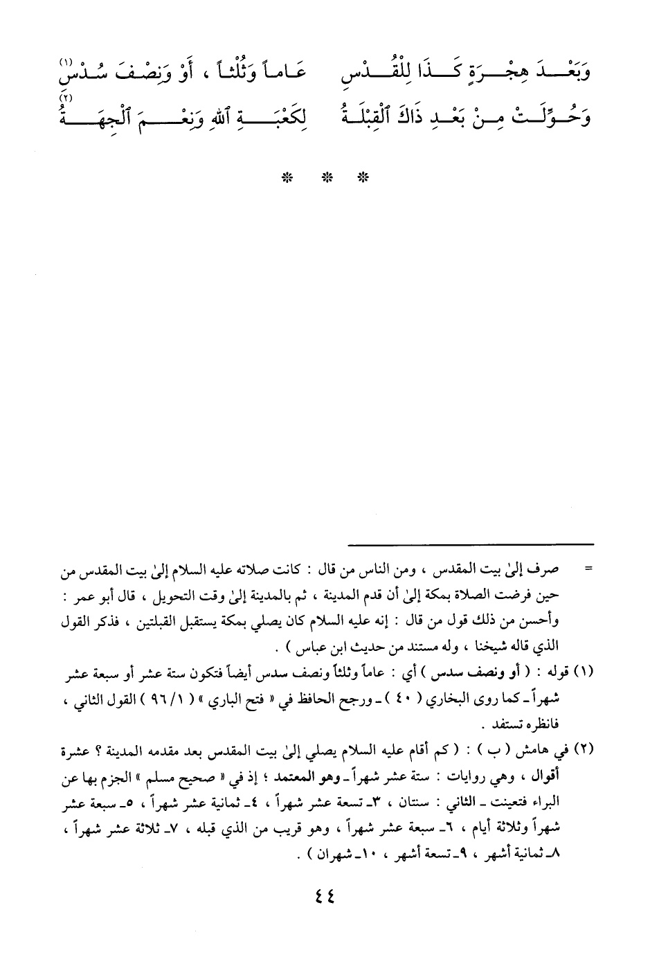وبعدَ هجرةٍ كذا للقُدْسِ ... عامًا وثُلثًا، أو ونصْفُ سُدْسِ «1»