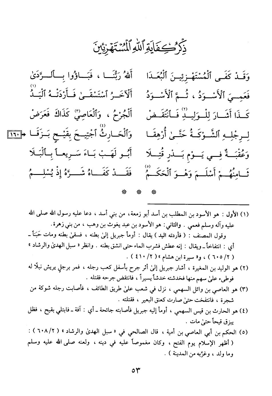 وقد كفى المستهزئين البعدا ... ألله ربّنا، فباؤوا بالرَّدَى