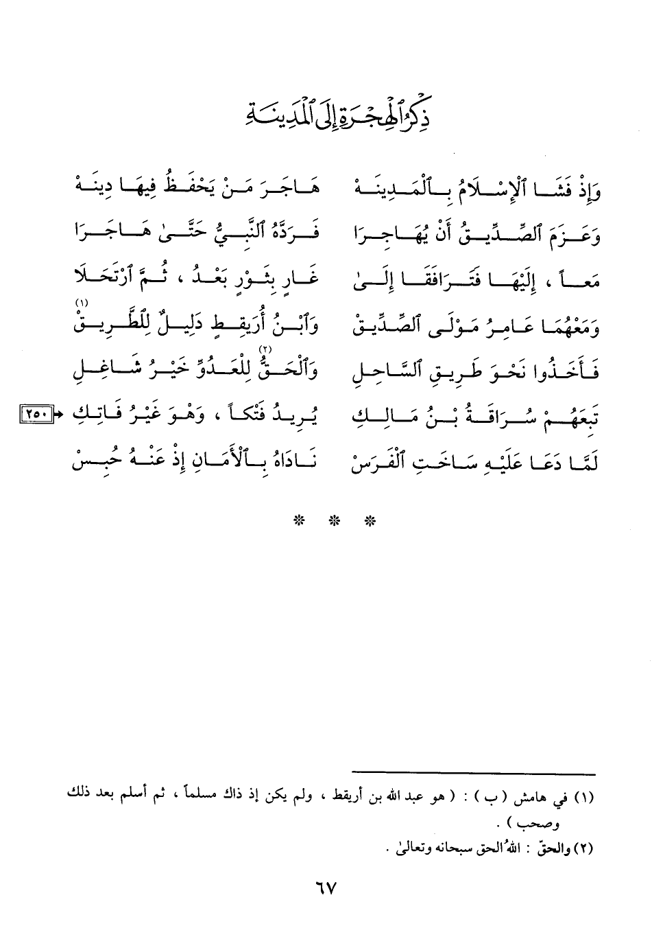 وإذْ فَشَا الإسلامُ بالمَدينهْ ... هَاجرَ مَنْ يحفظُ فيها دِينَهْ