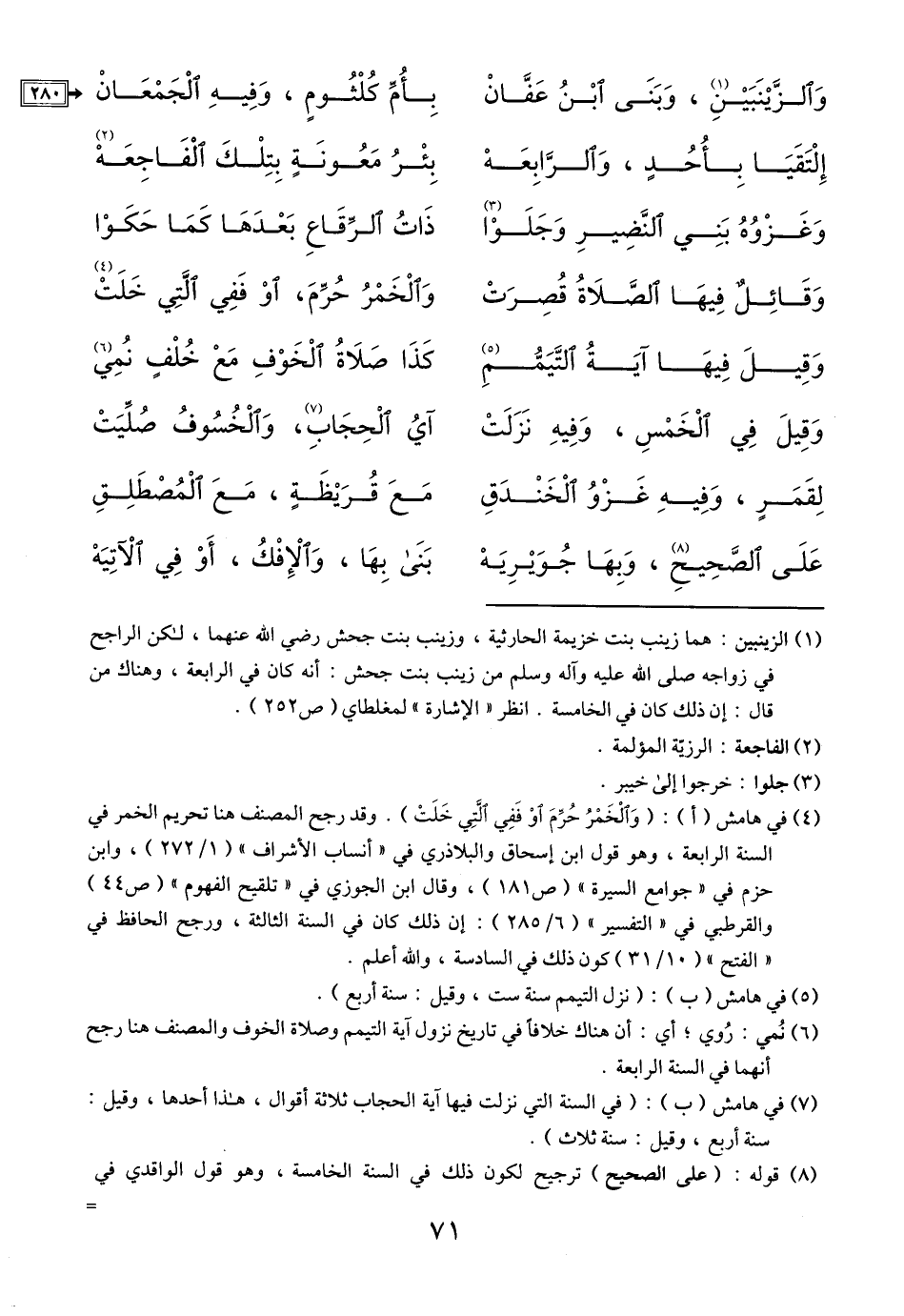 (1) الزينبين: هما زينب بنت خزيمة الحارثية، وزينب بنت جحش رضي الله عنهما، لكن الراجح في زواجه صلى الله عليه وآله وسلم من زينب بنت جحش: أنه كان في الرابعة، وهناك من قال: إن ذلك كان في الخامسة. انظر «الإشارة» لمغلطاي (ص 252) .