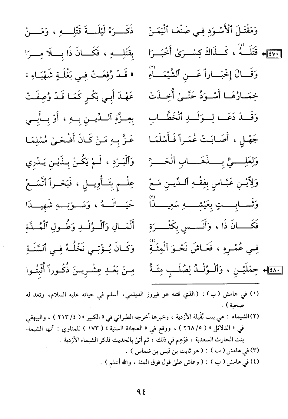 (1) في هامش (ب) : (الذي قتله هو فيروز الديلمي، أسلم في حياته عليه السلام، وتعد له صحبة) .