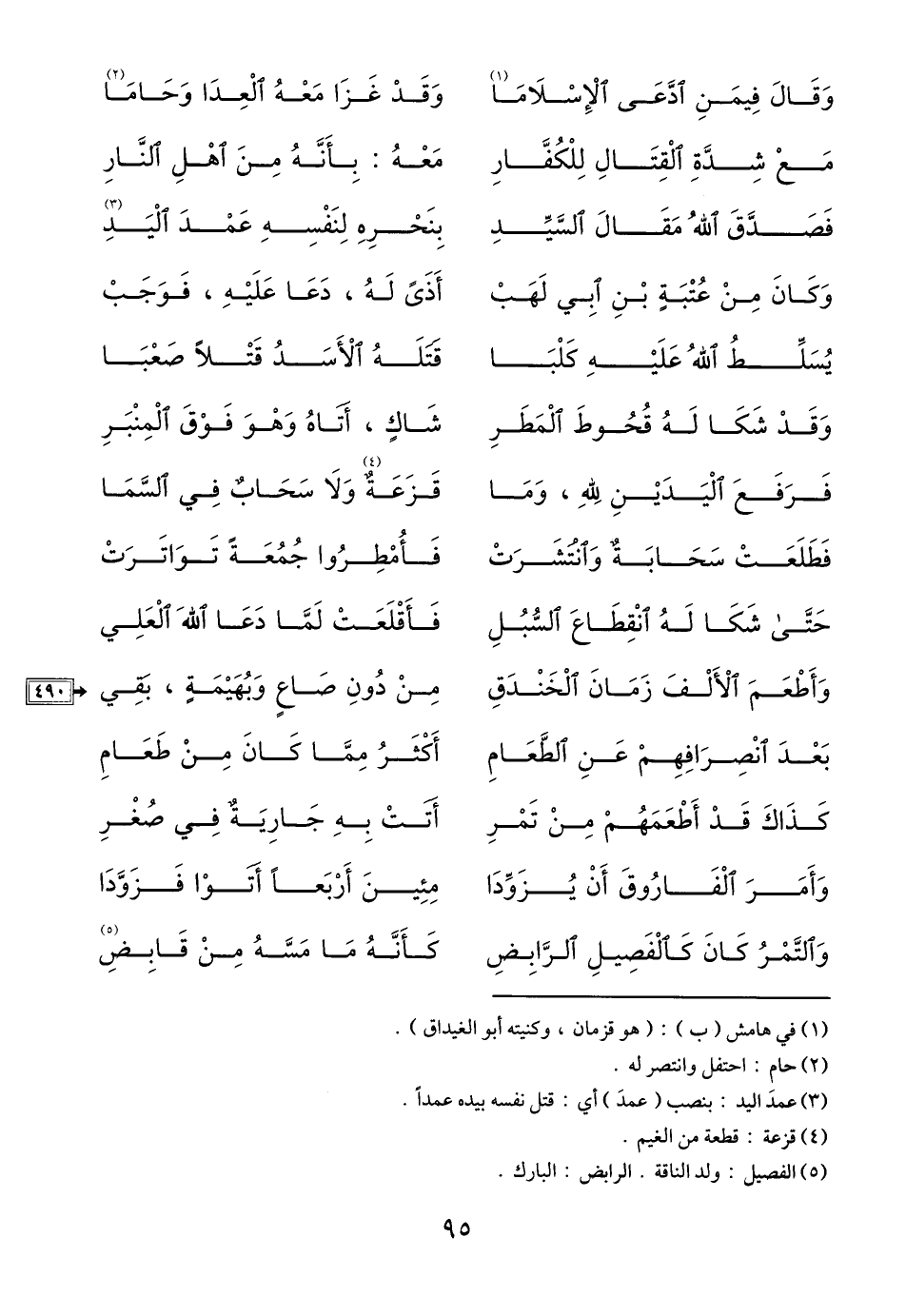 فَصَدَّقَ الله مقالَ السَّيّدِ ... بِنَحرِهِ لِنَفسِهِ عَمْدَ اليَدِ «3»