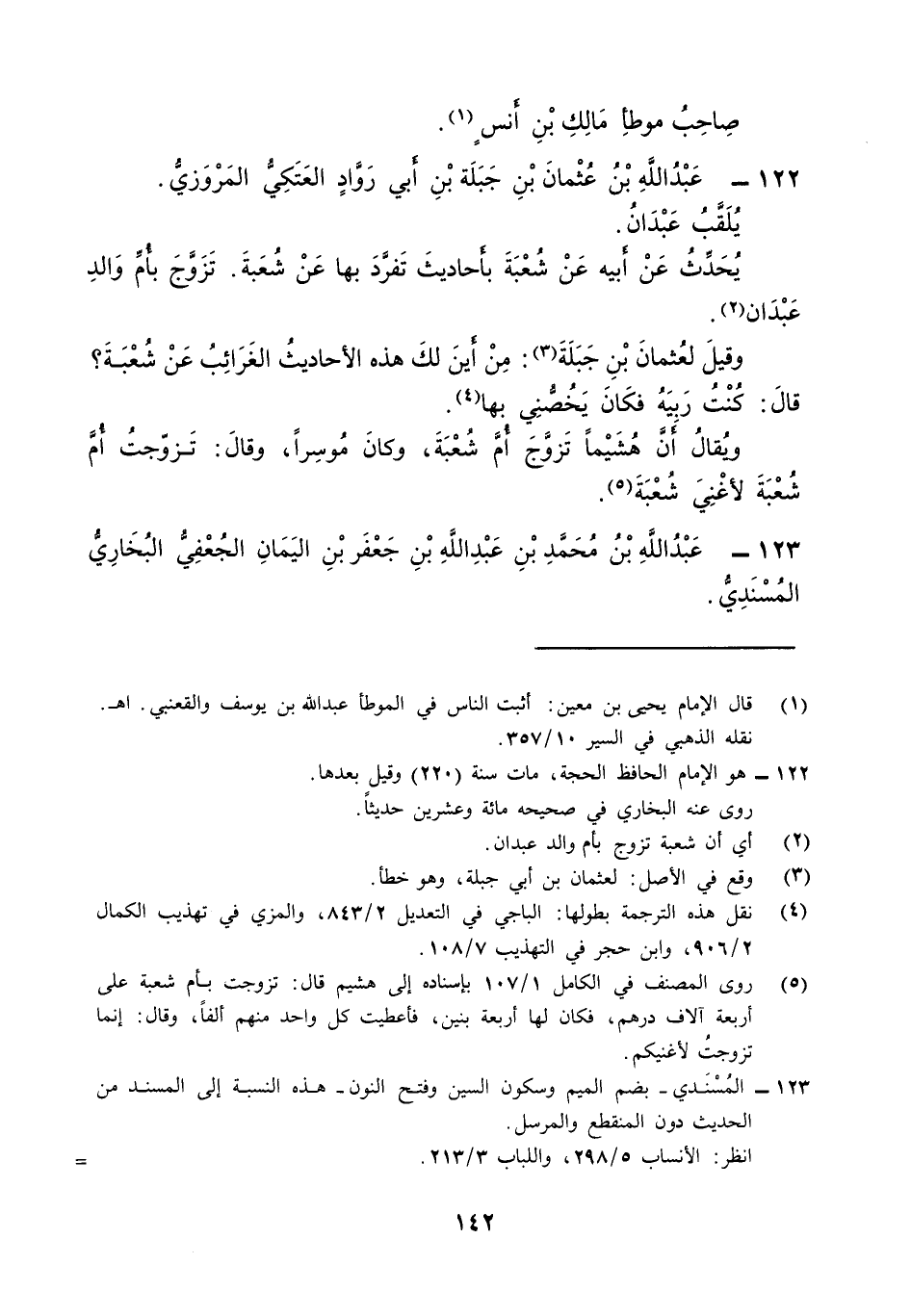 123 - عبد الله بن مُحَمَّد بن عبد الله بن جَعْفَر بن الْيَمَان الْجعْفِيّ البُخَارِيّ المسندي
