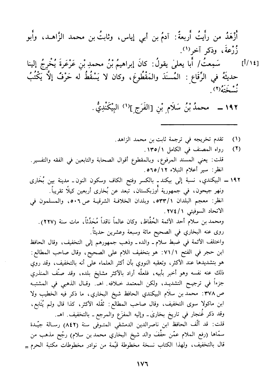 192 - مُحَمَّد بن سَلام بن [الْفرج] البيكندي
