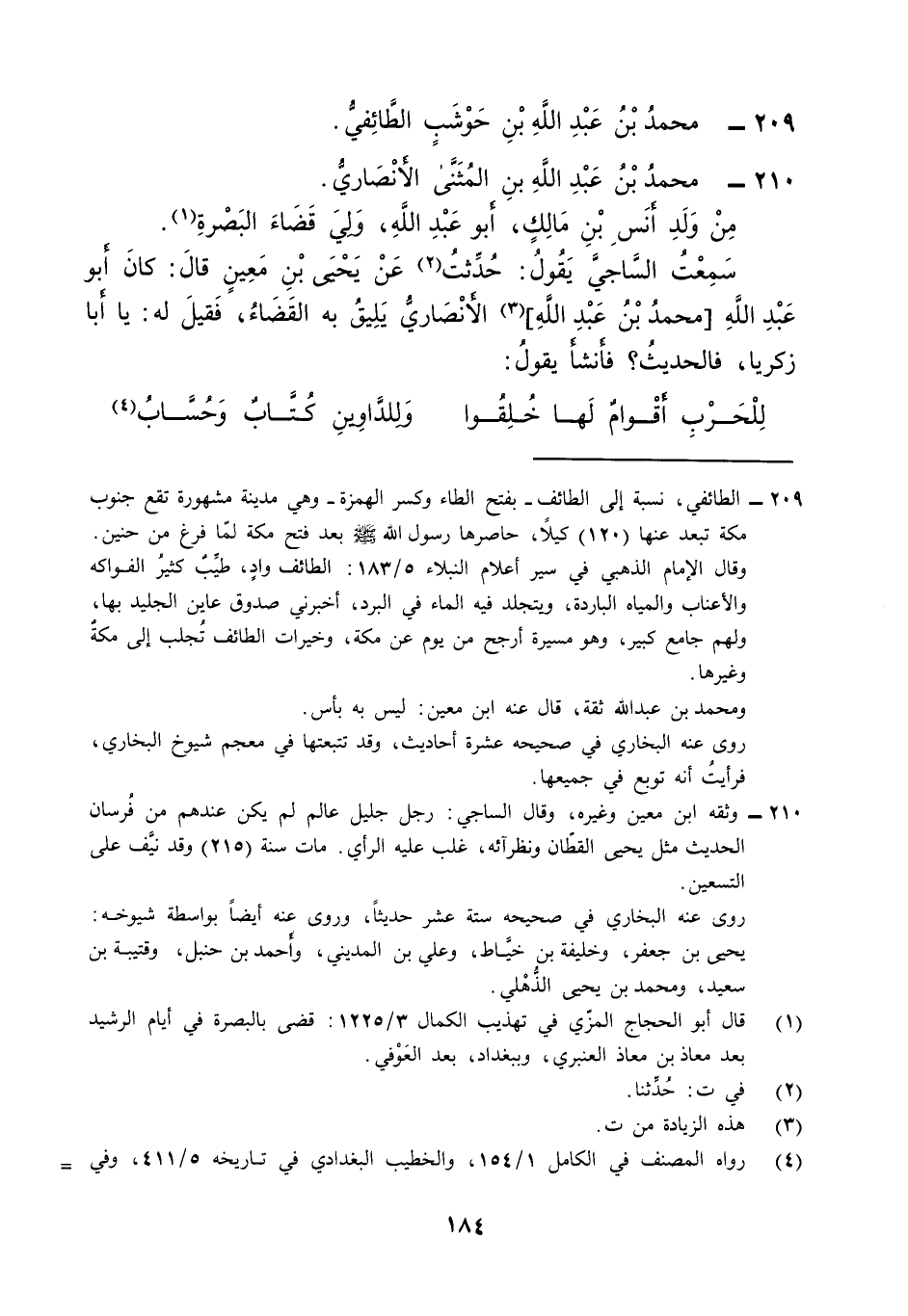 209 - مُحَمَّد بن عبد الله بن حَوْشَب الطَّائِفِي