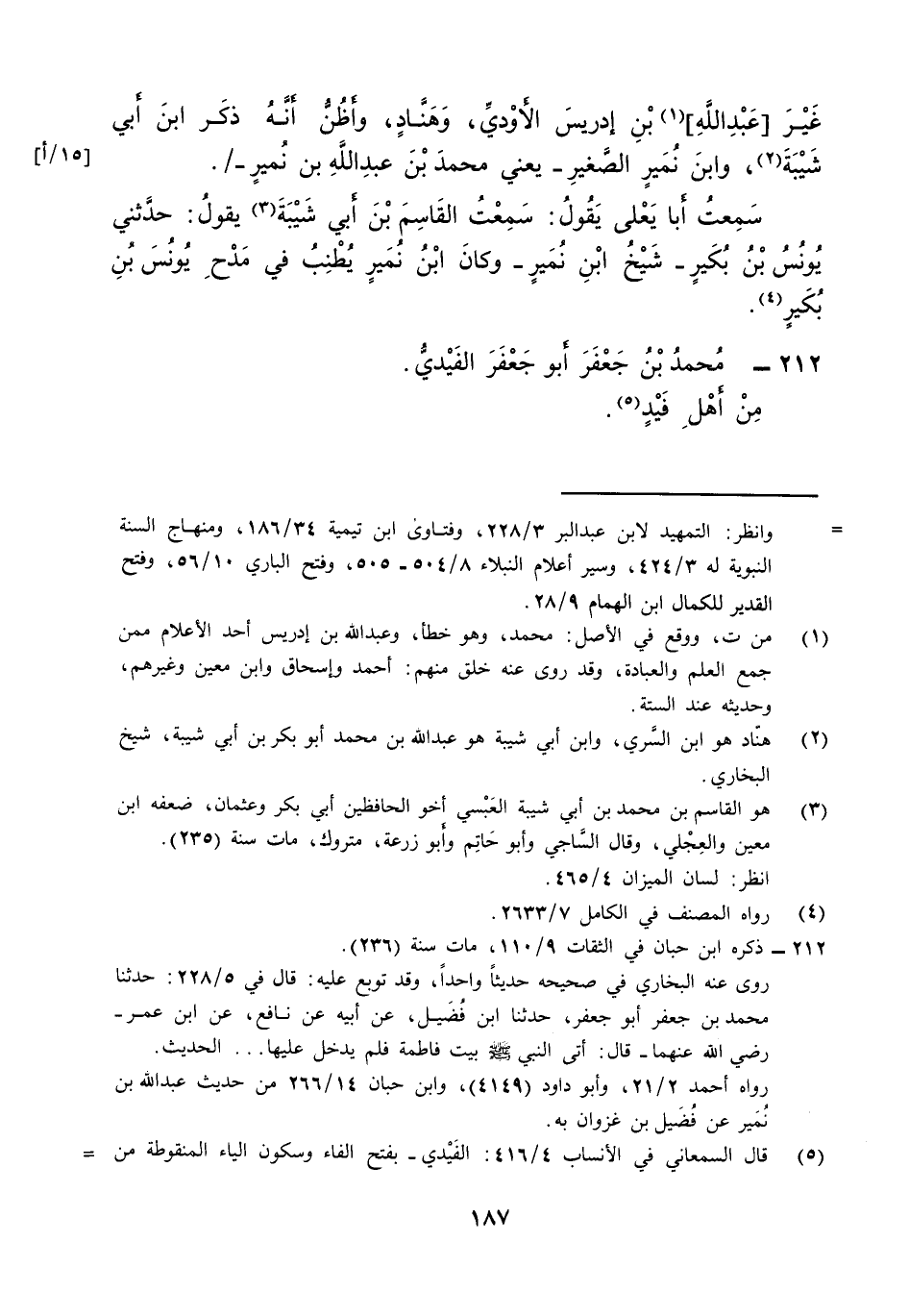 غير [عبد الله] بن إِدْرِيس الأودي وهناد وأظن أَنه ذكر ابْن أبي شيبَة وَابْن نمير الصَّغِير يَعْنِي مُحَمَّد بن عبد الله بن نمير [15 أ]