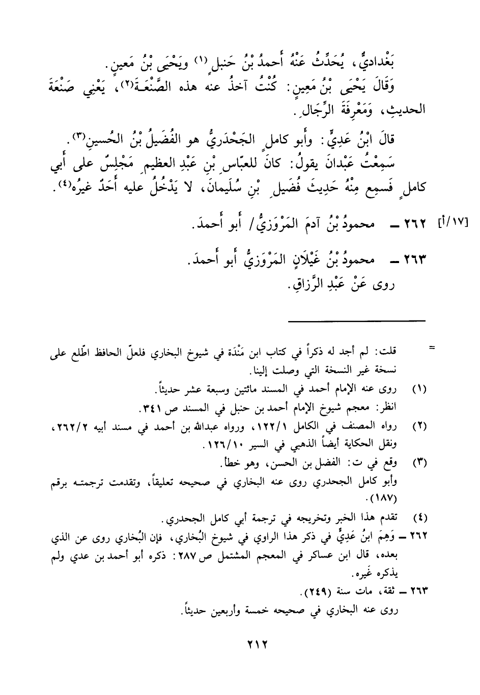 [17 أ] 262 مَحْمُود بن آدم الْمروزِي أَبُو أَحْمد