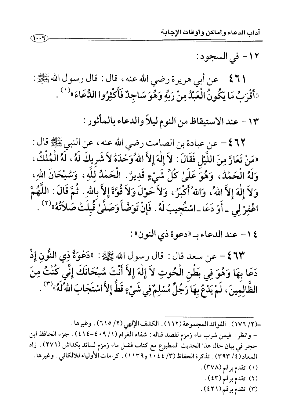 ٤٦١: عن أَبِي هريرة رضي الله عنه، قَالَ: قَالَ رسول الله صلى الله عليه وسلم: «أَقْرَبُ مَا يَكُونُ الْعَبْدُ مِنْ رَبِّهِ وَهُوَ سَاجِدٌ فَأَكْثِرُوا الدُّعَاءَ» (¬١).