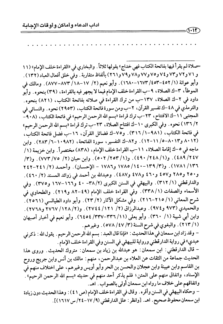- وحكاه البيهقي في السنن وأقره. وقال القراءة خلف الإمام (ص ٤١): وهذا الحديث دون زيادة ابن سمعان صحيح. اهـ ـ ـ. [وانظر: علل الدارقطني (٩/ ١٧ - ٢٤/ س ١٦١٧)].