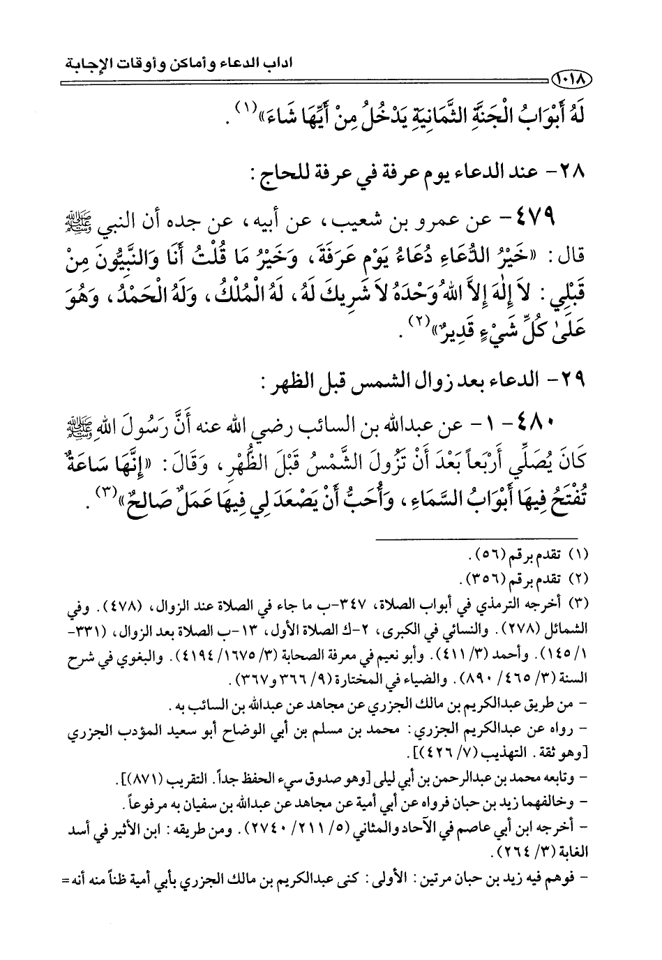 ٤٨٠ - ١ - عن عبد الله بن السائب رضي الله عنه أَنَّ رَسُولَ اللهِ صلى الله عليه وسلم كَانَ يُصَلِّي أَرْبعًا بَعْدَ أَنْ تَزُولَ الشَّمْسُ قَبْلَ الظُّهْرِ، وَقَالَ: «إِنَّهَا سَاعَةٌ تُفْتَحُ فِيهَا أَبْوَابُ السَّمَاءِ، وَأُحَبُّ أَنْ يَصْعَدَ لِي فِيهَا عَمْلٌ صَالحٌ» (¬٣).