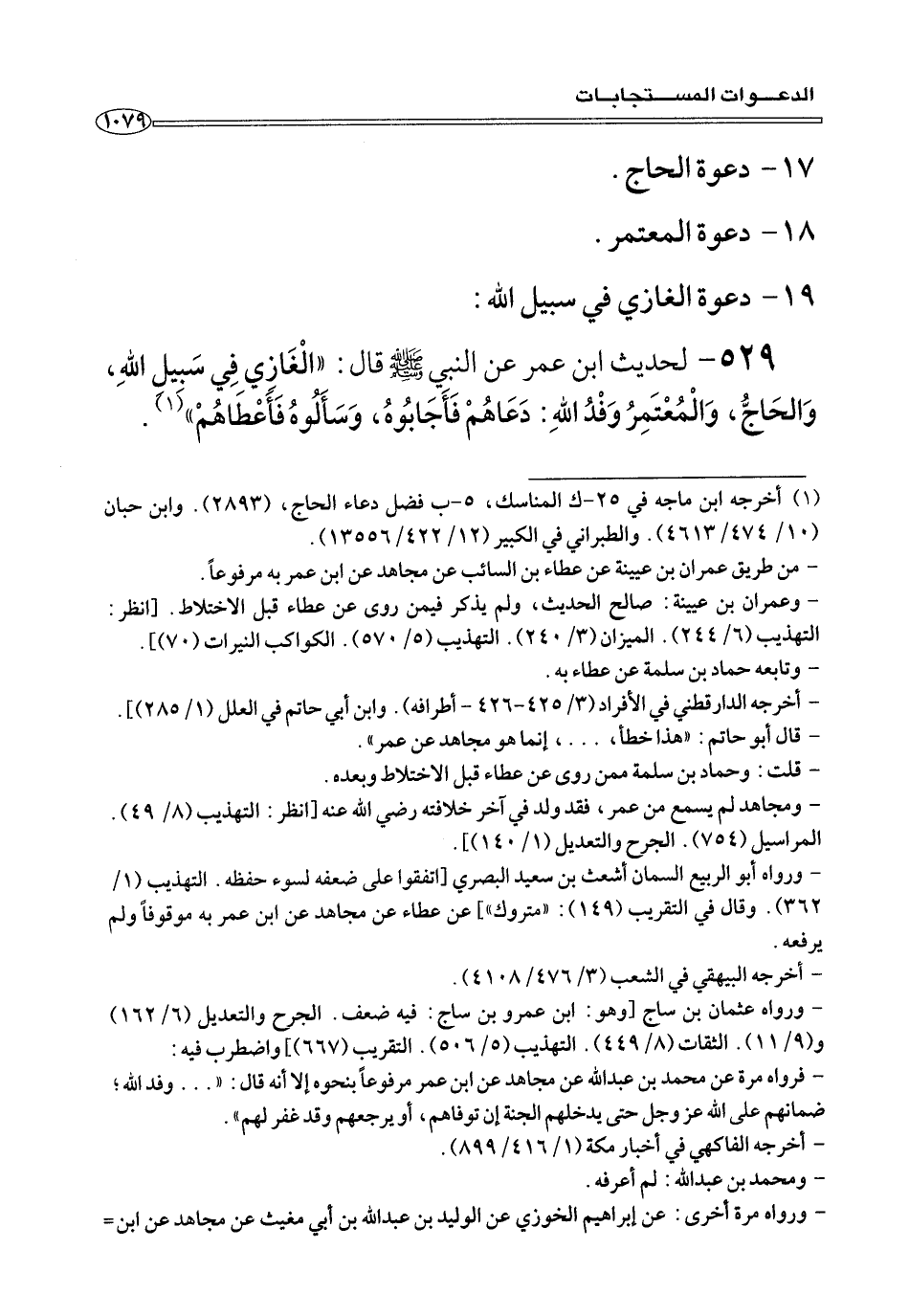 ٥٢٩ - لحديث ابن عمر عن النبي صلى الله عليه وسلم قَالَ: «الْغَازِي فِي سَبِيلِ اللهِ، وَالحَاجُّ، وَالْمُعْتَمِرُ وَفْدُ اللهِ: دَعَاهُمْ فَأَجَابُوهُ، وَسَأَلُوهُ فَأَعْطَاهُمْ» (¬١).