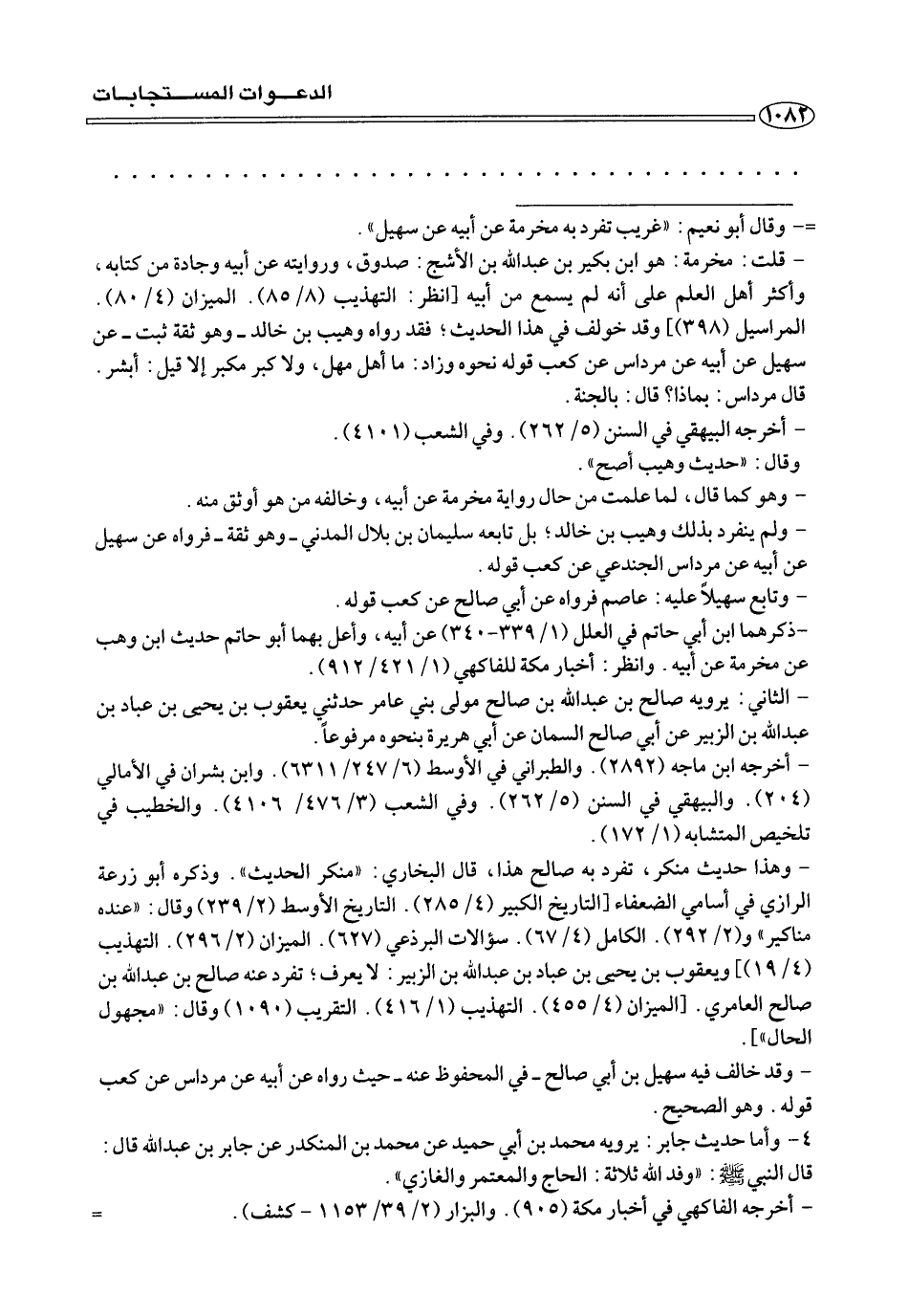 = وقال أبو نعيم: «غريب تفرد به مخرمة عن أبيه عن سهيل».
