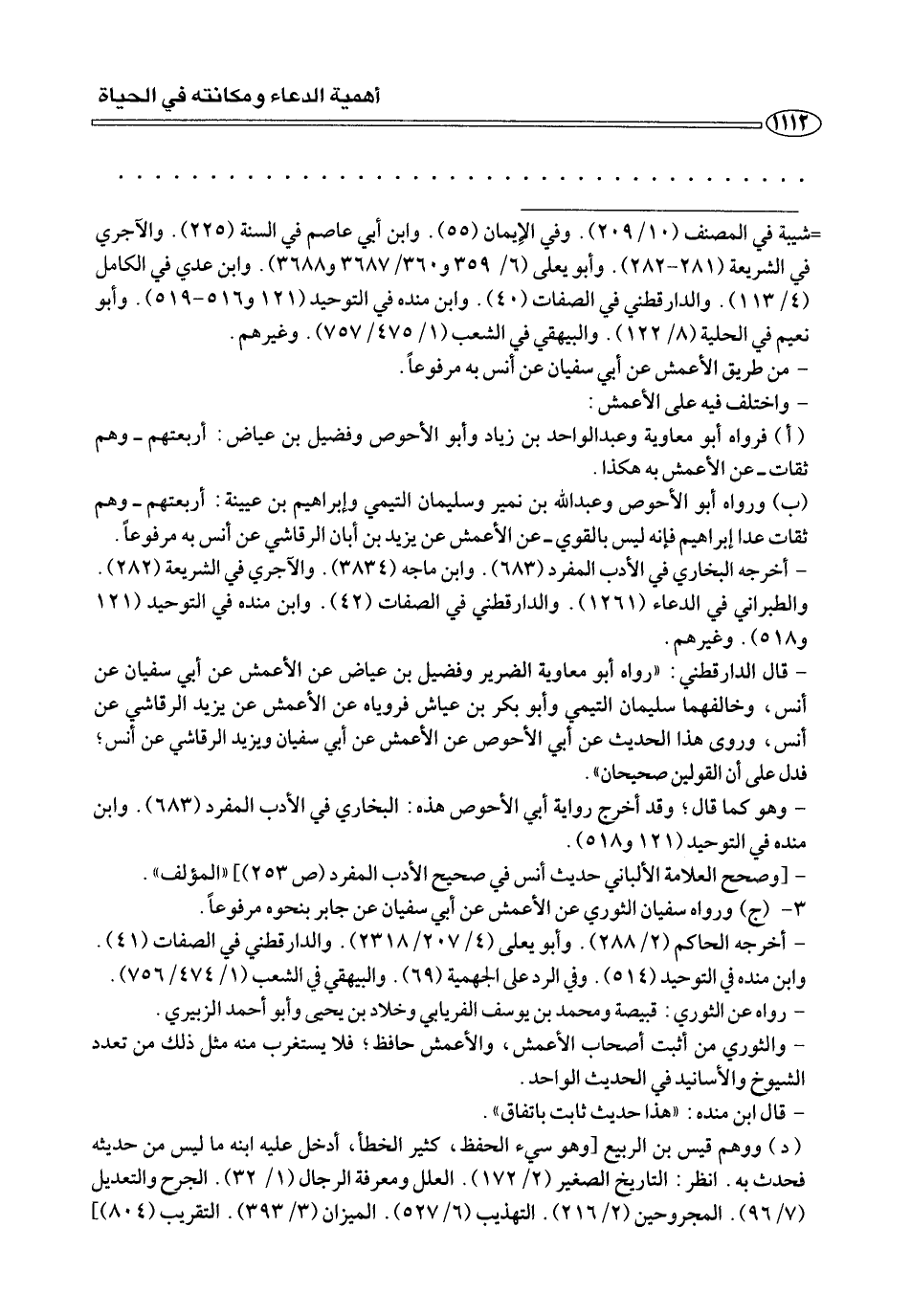 - قال الدارقطني: «رواه أبو معاوية الضرير وفضيل بن عياض عن الأعمش عن أبي سفيان عن أنس، وخالفهما سليمان التيمي وأبو بكر بن عياش فروياه عن الأعمش عن يزيد الرقاشي عن أنس، وروى هذا الحديث عن أبي الأحوص عن الأعمش عن أبي سفيان ويزيد عن أنس، فدل على أن القولين صحيحان».