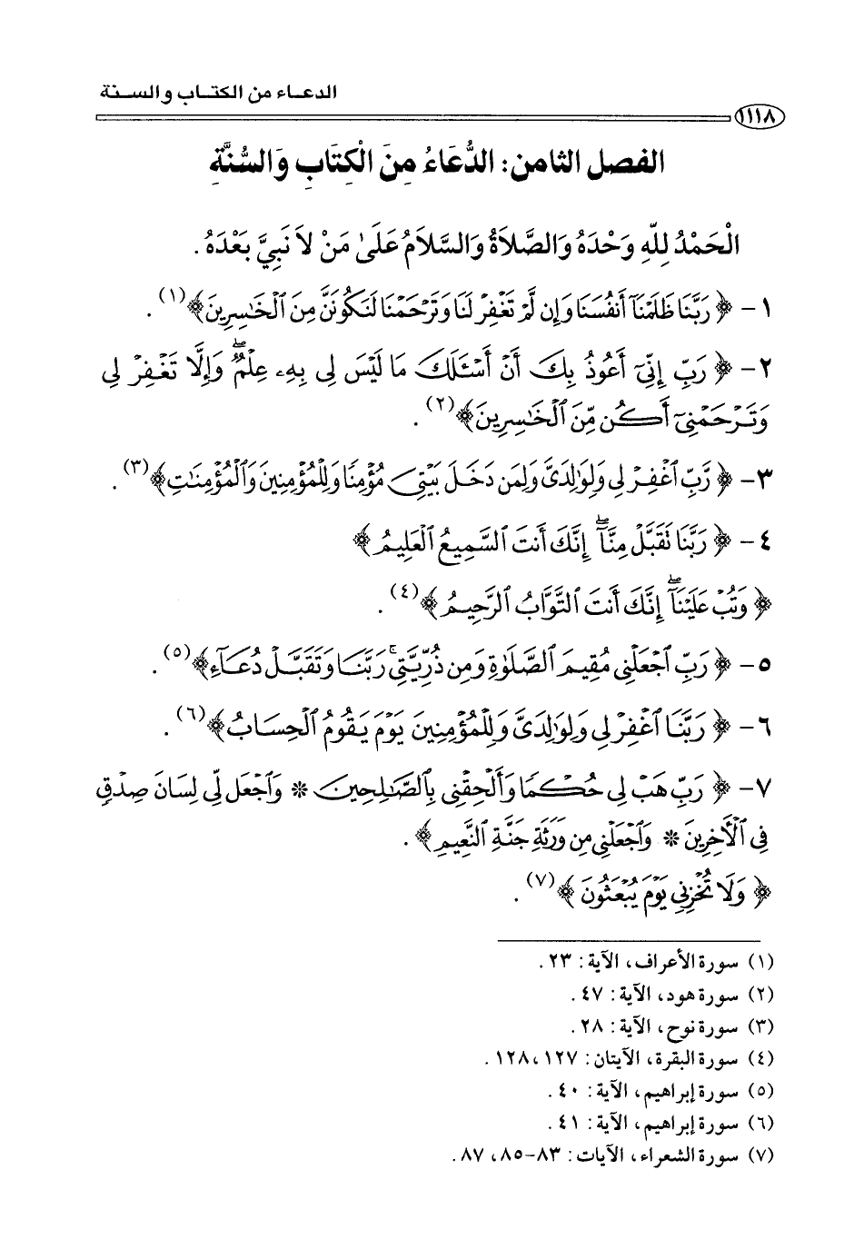 الفصل الثامن: الدُّعَاءُ مِنَ الْكِتَابِ وَالسُّنَّةِ