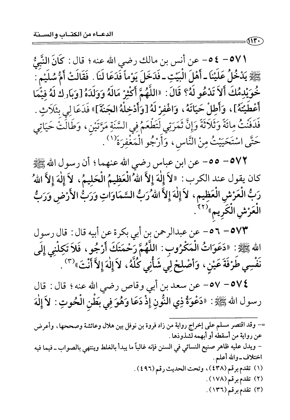 ٥٧٢ - ٥٥ - عن ابن عباس رضي الله عنهما؛ أن رسول الله صلى الله عليه وسلم كَانَ يَقُولُ عِنْدَ الكرب: «لَا إِلهَ إِلَّا اللهُ الْعَظِيمُ الْحَلِيمُ، لَا إِلهَ إِلَّا اللهُ رَبُّ الْعَرْشِ الْعَظِيمِ، لَا إِلهَ إِلَّا اللهُ رَبُّ السَّمَاوَاتِ وَرَبُّ الأَرْضِ وَرَبُّ الْعَرْشِ الْكَرِيمِ» (¬٢) .