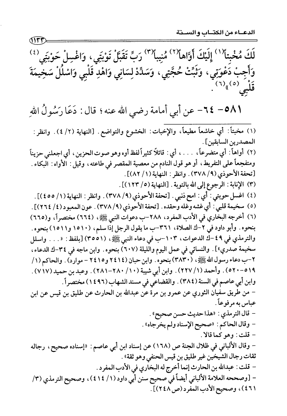 ٥٨١ - ٦٤ - عن أَبِي أمامة رضي الله عنه؛ قَالَ: دَعَا رسول الله