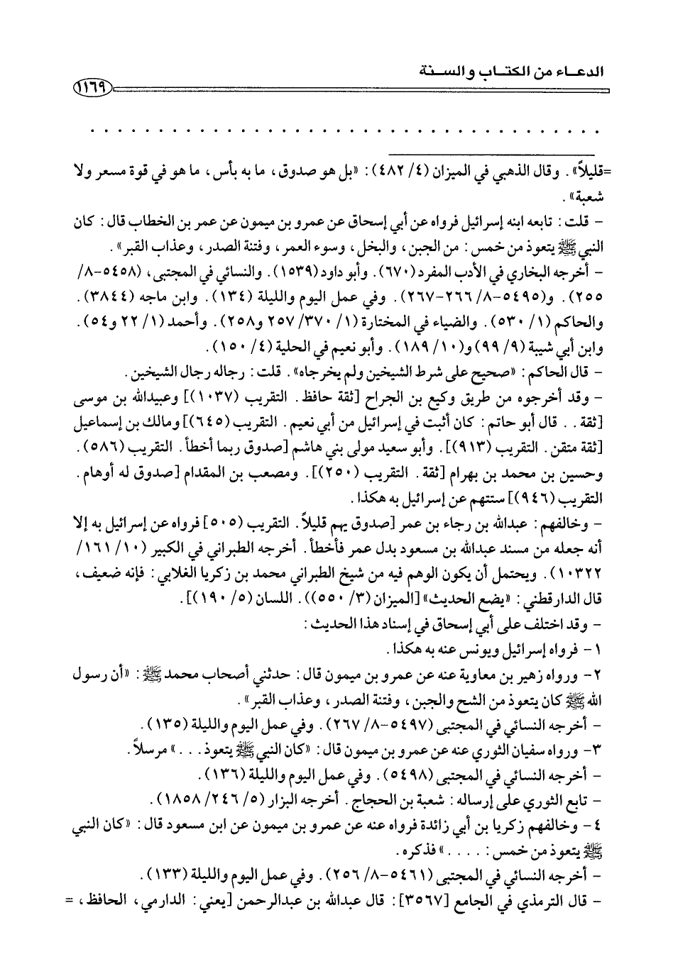 - قلت: تابعه ابنه إسرائيل فرواه عن أبي إسحاق عن عمرو بن ميمون عن عمر بن الخطاب قال: كان النبي صلى الله عليه وسلم يتعوذ من خمس: من الجبن، والبخل، وسوء العمر، وفتنة الصدر، وعذاب القبر».