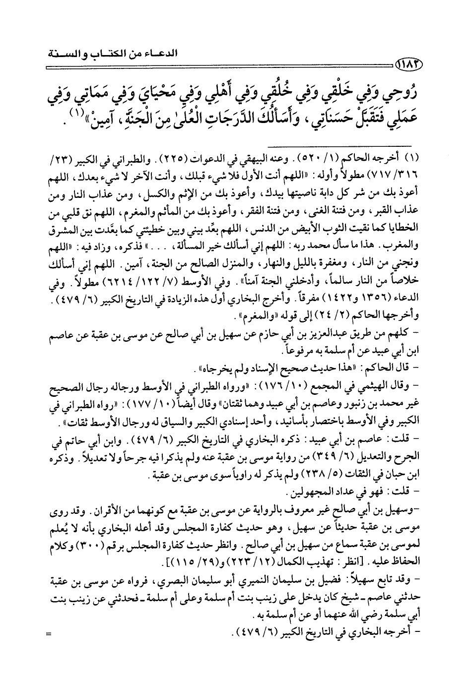 - ... كلهم من طريق عبد العزيز بن أبي حازم عن سهيل بن أبي صالح عن موسى بن عقبة عن عاصم ابن أبي عبيد عن أم سلمة به مرفوعا.
