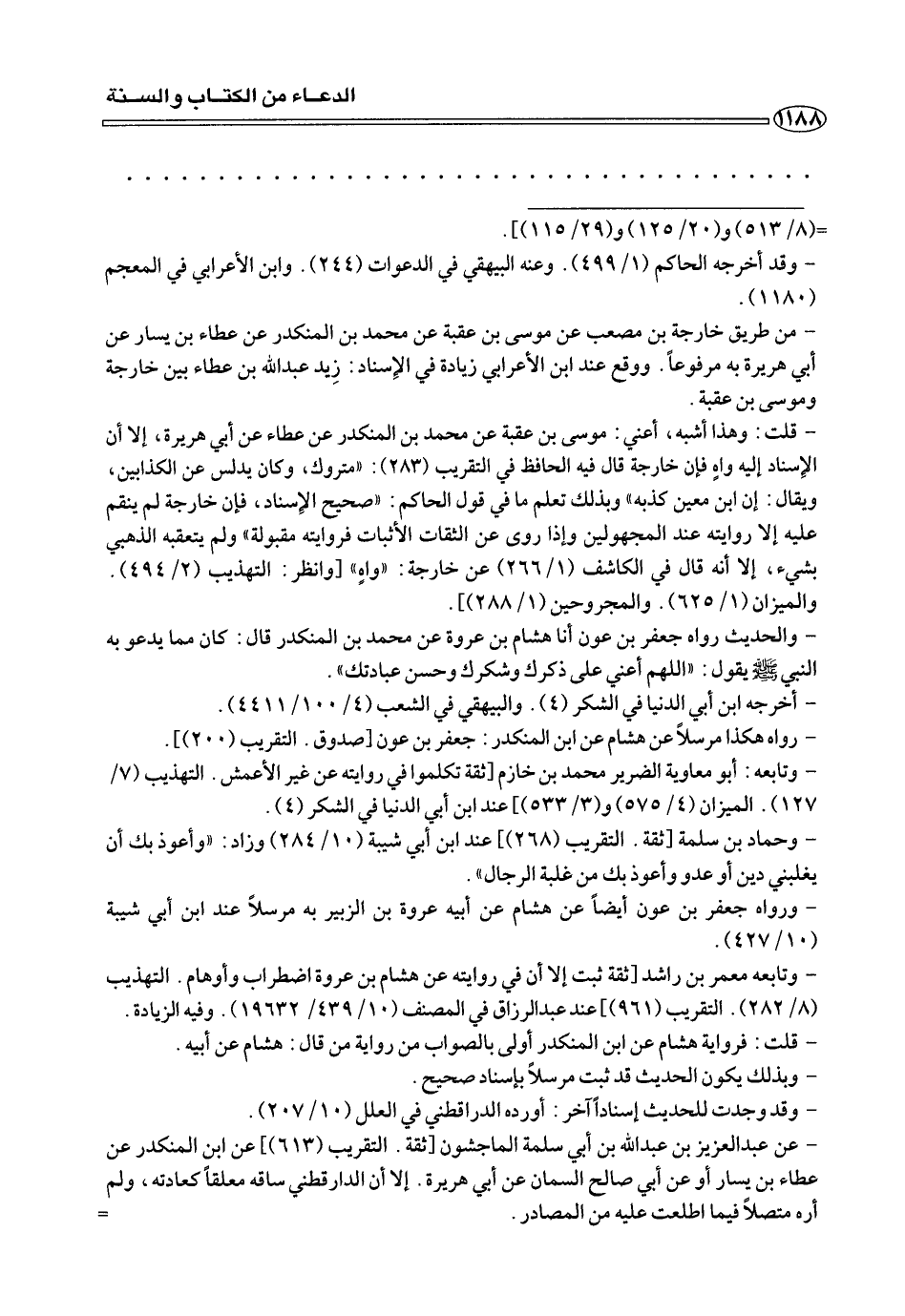 - والحديث رواه جعفر بن عون أنا هشام بن عروة عن محمد بن المنكدر قال: كان مما يدعو به النبي صلى الله وعليه وسلم يقول: «اللهم أعنى على ذكرك وشكرك وحسن عبادتك».