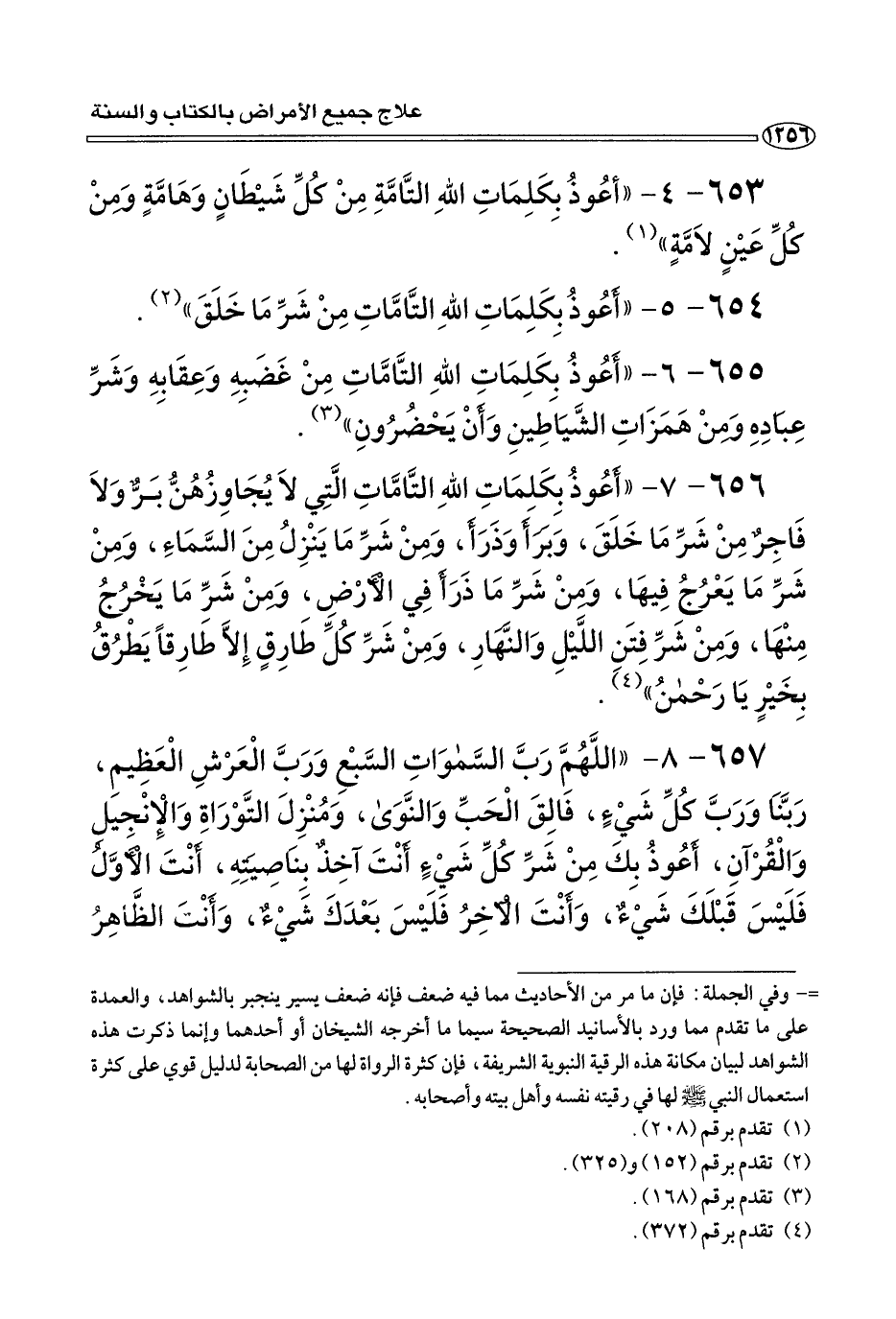 ٦٥٤ - ٥ - «أَعُوذُ بِكَلِمَاتِ اللهِ التَّامَّاتِ مِن شر مَا خلق» (¬٢) .