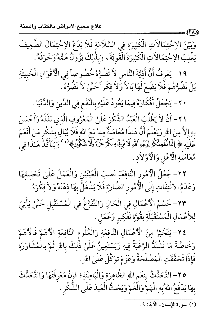 ٢٠ - يَجْعَلُ أَفْكَارَهُ فِيمَا يَعُودُ عَلَيْهِ بِالنَّفْعِ فِي الدِّينِ وَالدُّنْيَا.