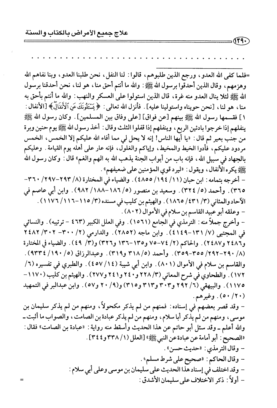 - وقد قصر بعضهم في إسناده: فمنهم من لم يذكر مكحولًا، ومنهم من لم يذكر سليمان بن موسى، ومنهم من لم يذكر أبا سلام، ومنهم من لم يذكر عبادة بن الصامت، والصواب ما أثبت- والله أعلم- وقد سئل أبو حاتم عن هذا الحديث وأسقط منه رواية: «عبادة بن الصامت» فقال: «الصحيح: أبو أمامة عن عبادة عن النبي صلى الله عليه وسلم» [العلل (١/ ٣٣٨ و ٣٤٤)].