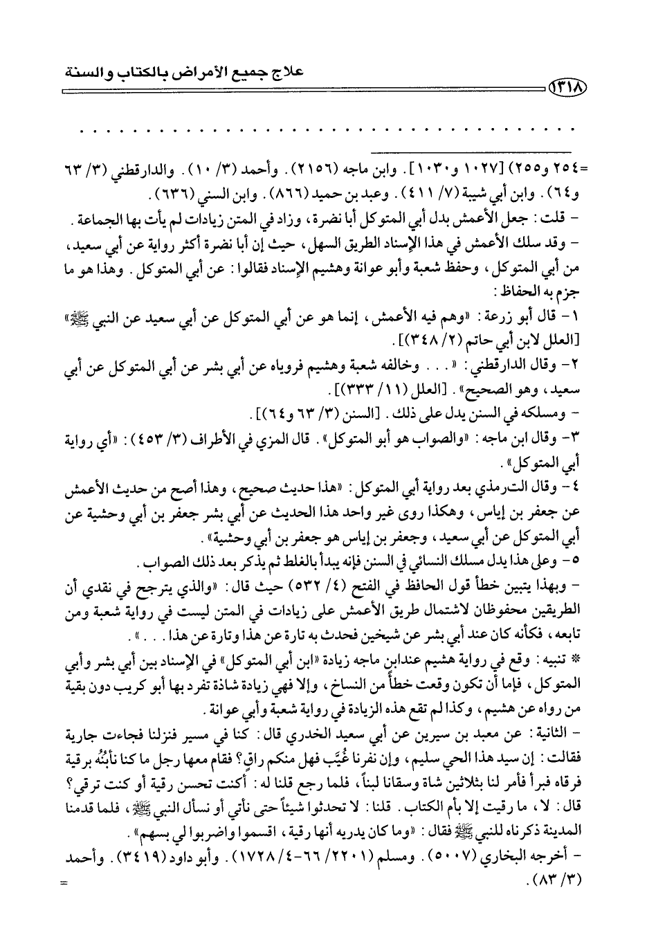 - وقد سلك الأعمش في هذا الإسناد الطريق السهل، حيث إن أبا نضرة أكثر رواية عن أبي سعيد، من أبي المتوكل، وحفظ شعبة وأبو عوانة وهشيم الإسناد فقالوا: عن أبي المتوكل. وهذا هو ما جزم به الحفاظ:
