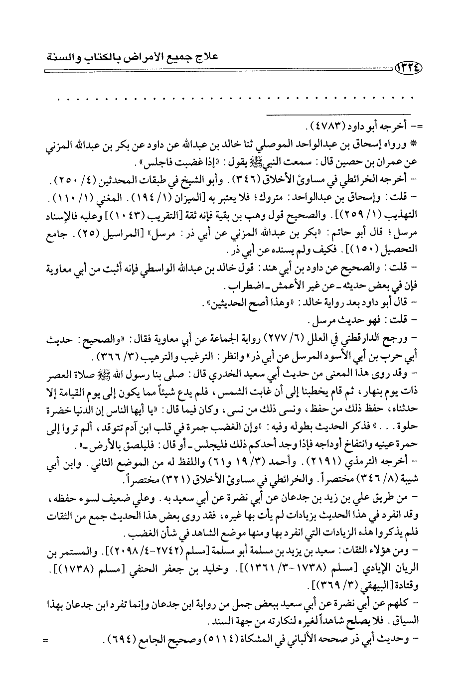 - ورجح الدارقطني في العلل (٦/ ٢٧٧) رواية الجماعة عن أبي معاوية فقال: «والصحيح: حديث أبي حرب بن أبي الأسود المرسل عن أبي ذر» وانظر: الترغيب والترهيب (٣/ ٣٦٦).