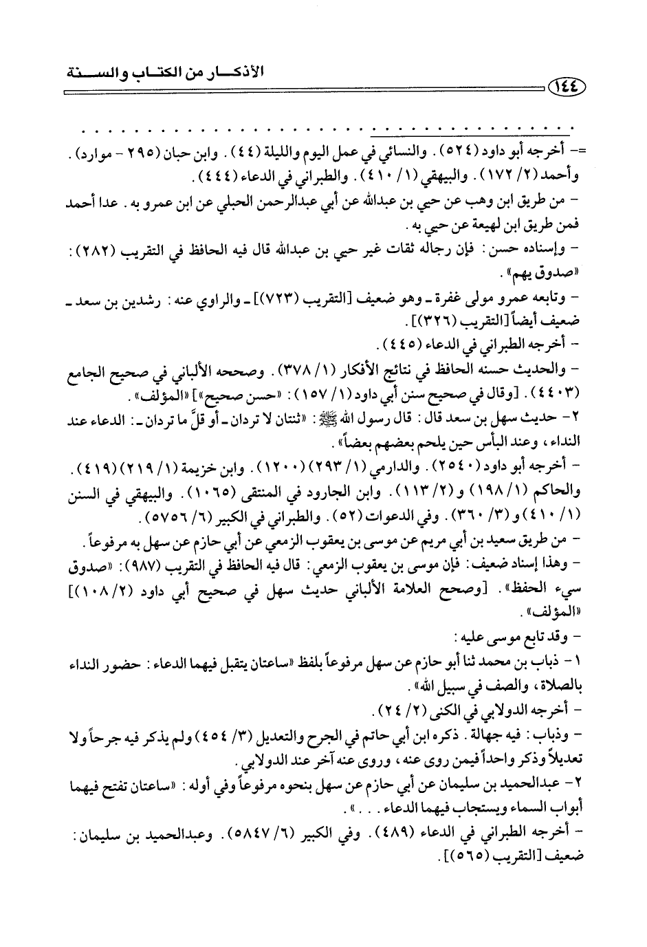 - والحديث حسنه الحافظ في نتائج الأفكار (١/ ٣٧٨). وصححه الألباني في صحيح الجامع (٤٤٠٣)] وقال في صحيح سنن أبي داود (١/ ١٥٧): «حسن صحيح» [«المؤلف».