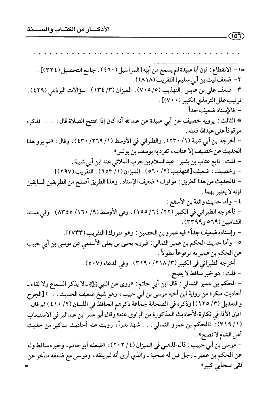 - الحكم بن عمير الثمالي: قال ابن أبي حاتم: «روي عن النبي صلى الله عليه وسلم -لا يذكر السماع ولا لقاء -أحاديث منكرة من رواية ابن أخيه موسي بن أبي حبيب، وهو شيخ ضعيف الحديث .... » [الجرح والتعديل (٣/ ١٢٥)] وذكره في الصحابة جماعة ذكرهم الحافظ في اللسان (٢/ ٤١٠) ثم قال: «فإن الآفة في نكارة الأحاديث المذكورة من الراوي عنه «وقال أبو عمر ابن عبد البر في الاستيعاب (١/ ٣١٩): «الحكم بن عمرو الثمالي ... شهد بدرا، رويت عنه أحاديث مناكير من حديث أهل الشام لا تصح».