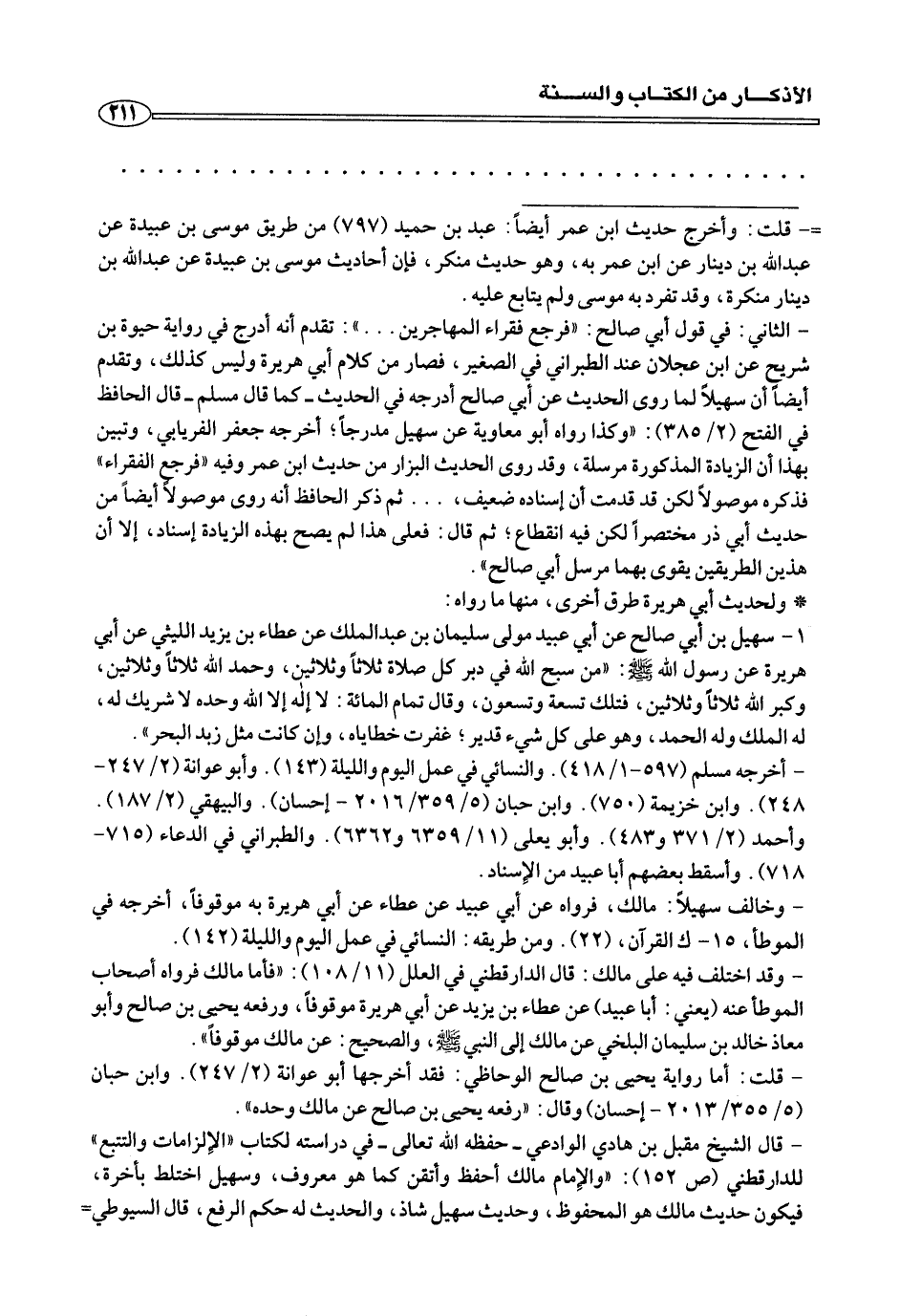 - قال الشيخ مقبل بن هادي الوادعي- حفظه الله تعالى- في دراسته لكتاب «الإلزامات والتنبع «للدارقطني (ص ١٥٢): «والإمام مالك أحفظ وأتقن كما هو معروف، وسهيل اختلط بأخرة، فيكون حديث مالك هو المحفوظ، وحديث سهيل شاذ، والحديث له حكم الرفع، قال السيوطي=