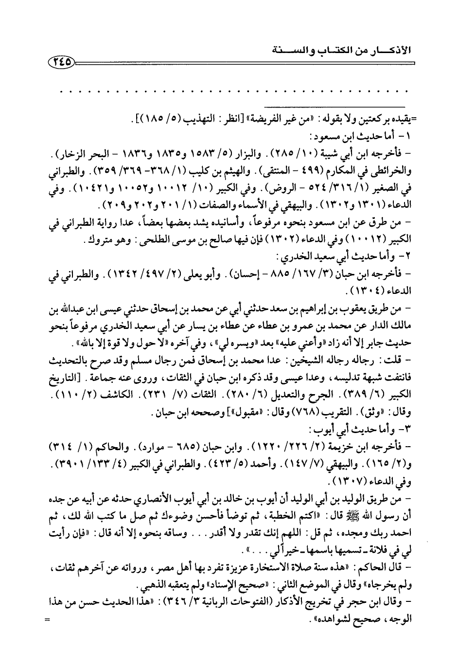 - وقال ابن حجر في تخريج الأذكار (الفتوحات الربانية ٣/ ٣٤٦): «هذا الحديث حسن من هذا الوجه، صحيح لشواهده».=