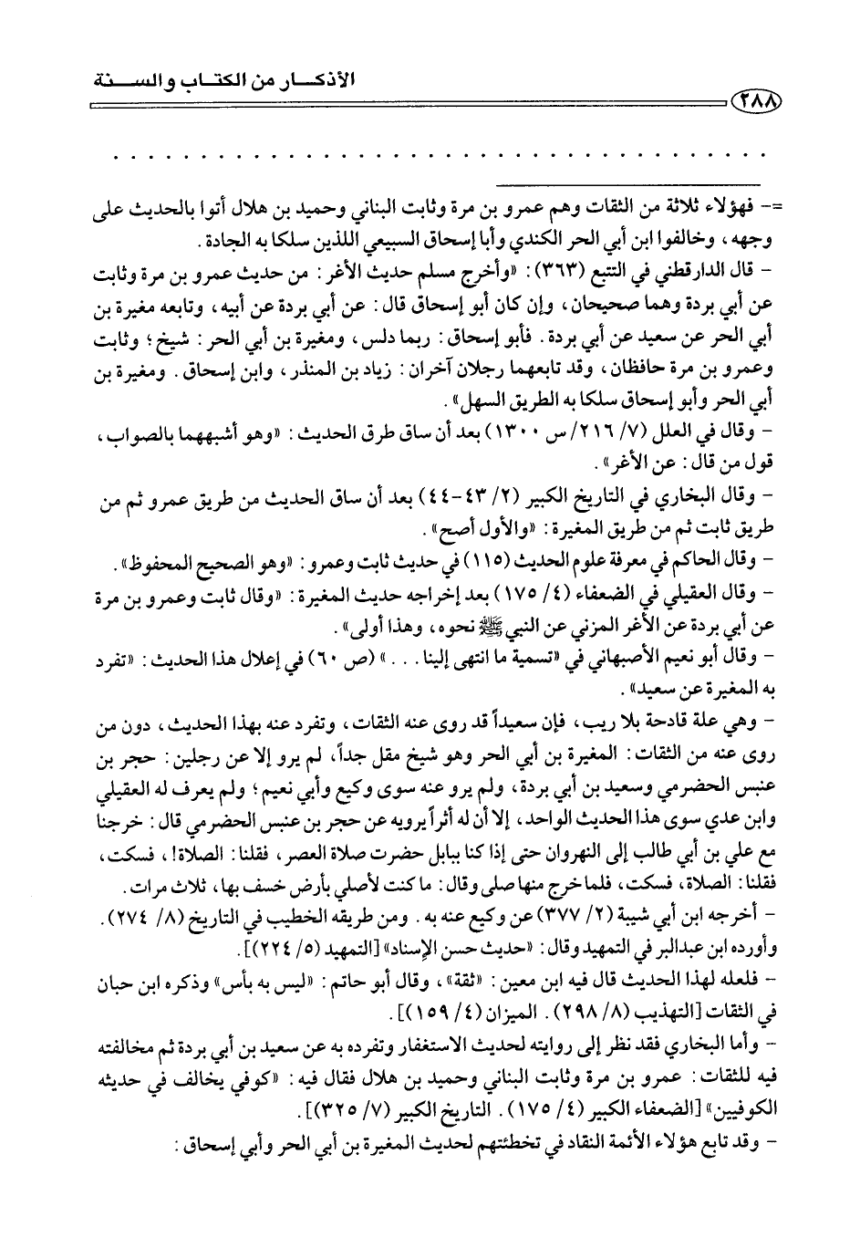 =فهؤلاء ثلاثة من الثقات وهم عمرو بن مرة وثابت البناني وحميد بن هلال أتوا بالحديث على وجهه، وخالفوا ابن أبي الحر الكندي وأبا إسحاق السبيعي اللذين سلكا به الجادة.