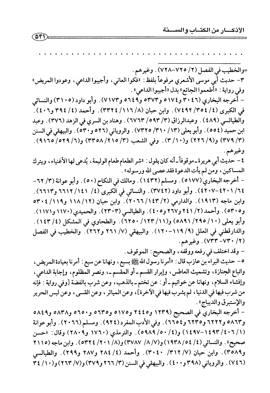 ٣ - حديث أبي موسى الأشعري مرفوعًا بلفظ: «فكوا العاني، وأجيبوا الداعي، وعودوا المريض» وفي رواية: «أطعموا الجائع» بدل «أجيبوا الداعي».