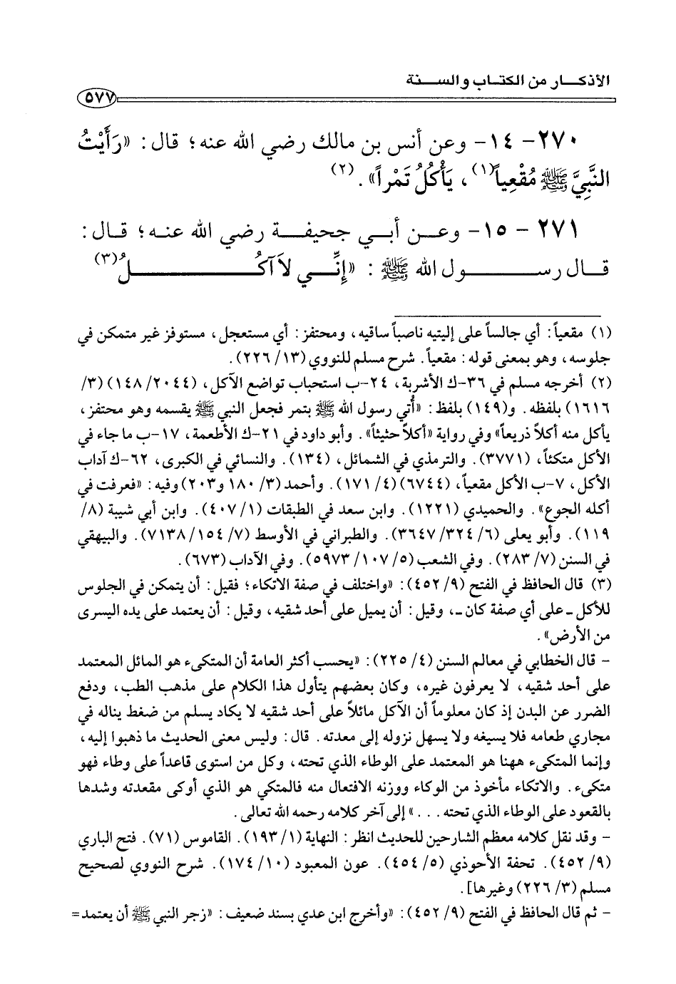 ٢٧٠ - ١٤ - وعن أنس بن مالك رضي الله عنه؛ قال: «رَأَيْتُ النَّبِيَّ صلى الله عليه وسلم مُقْعِيًا (¬١) ، يَأْكُلُ تَمْرًا» (¬٢) .
