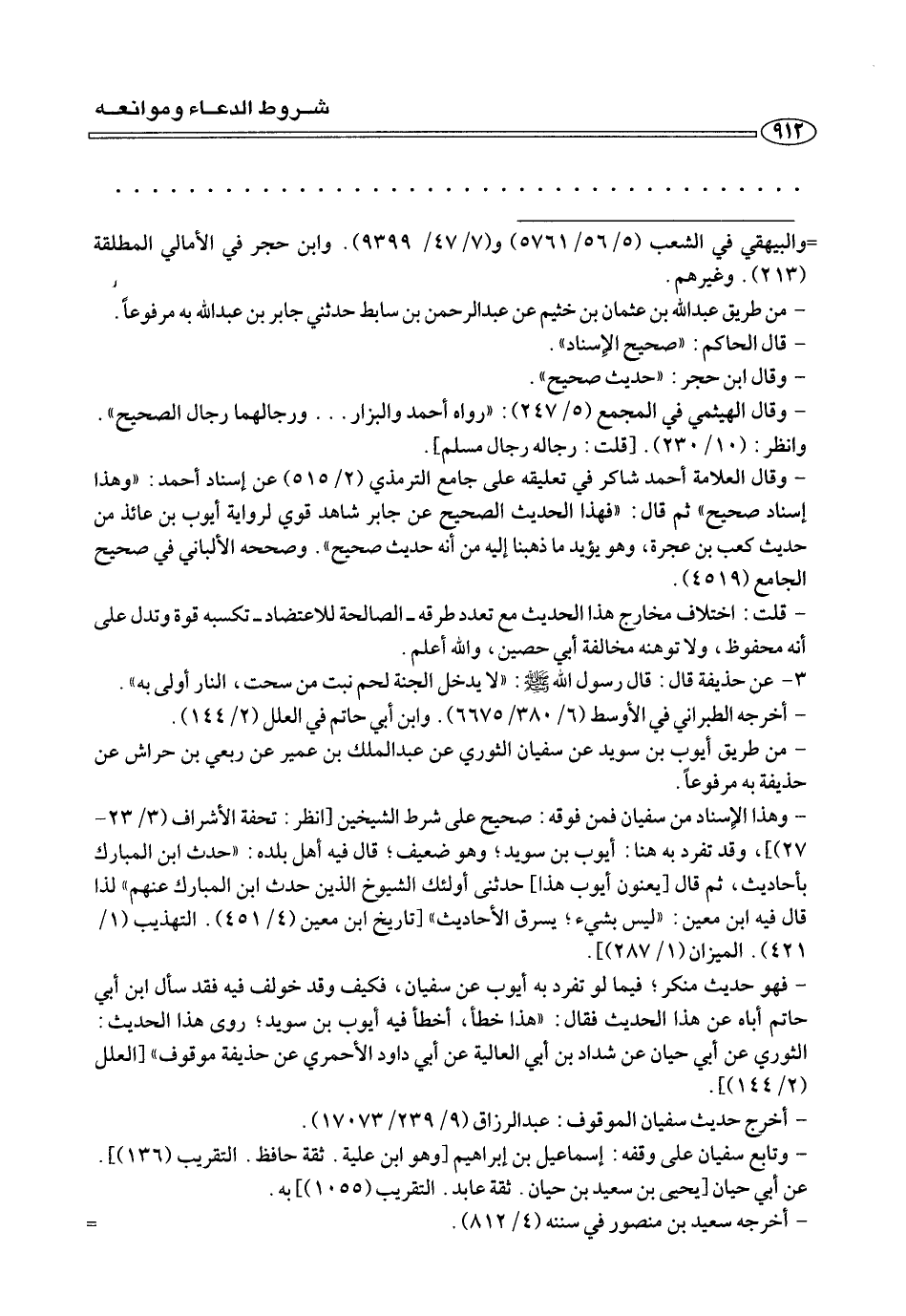 - وهذا الإسناد من سفيان فمن فوقه: صحيح على شرط الشيخين [انظر: تحفة الأشراف (٣/ ٢٣ - ٢٧)]، وقد تفرد به هنا: أيوب بن سويد؛ وهو ضعيف؛ قال فيه أهل بلده: «حدث ابن المبارك بأحاديث، ثم قال [يعنون أيوب هذا] حدثني أولئك الشيوخ الذين حدث ابن المبارك عنهم» لذا قال فيه ابن معين: «ليس بشيء؛ يسرق الأحاديث» [تاريخ ابن معين (٤/ ٤٥١). التهذيب (١/ ٤٢١). الميزان (١/ ٢٨٧)].