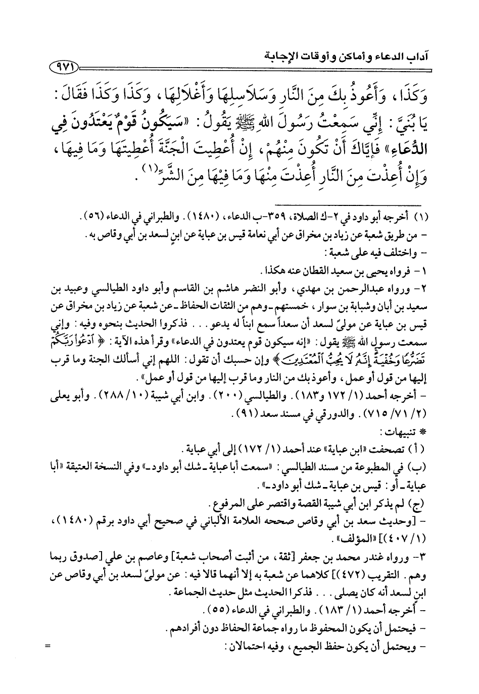 -[وحديث سعد بن أبي وقاص صححه العلامة الألباني في صحيح أبي داود برقم (١٤٨٠)، (١/ ٤٠٧)] «المؤلف».