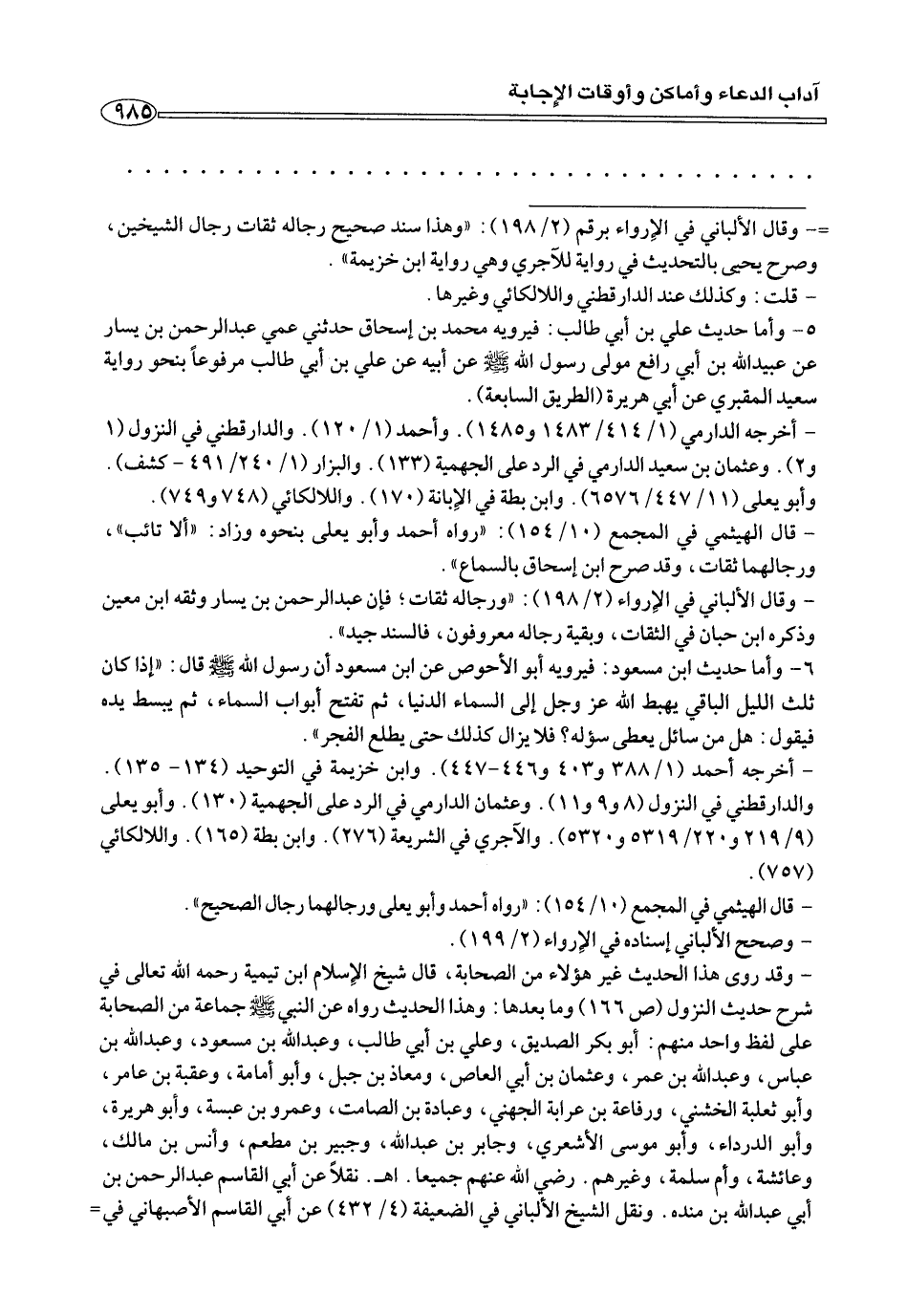 - وقد روى هذا الحديث غير هؤلاء من الصحابة، قال شيخ الإسلام ابن تيمية رحم الله تعالى في شرح حديث النزول (ص ١٦٦) وما بعدها: وهذا الحديث رواه عن النبي صلى الله عليه وسلم جماعة من الصحابة علي لفظ واحد منهم: أبو بكر الصديق، وعلي بن أبي طالب، وعبد الله بن مسعود، وعبد الله بن عباس، وعبد الله