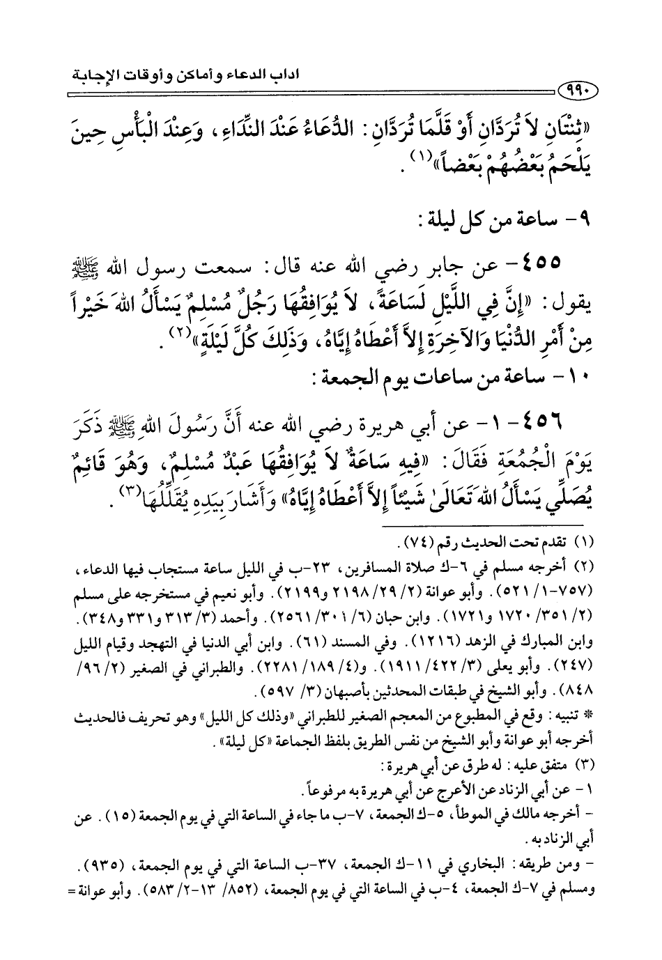 ٤٥٥ - عن جابر رضي الله عنه قَالَ: سمعت رسول الله صلى الله عليه وسلم يَقُولُ: «إِنَّ فِي اللَّيْلِ لَسَاعَةً، لَا يُوَافِقُهَا رَجُلٌ مُسْلِمٌ يَسْأَلُ اللهَ خَيْرًا مِنْ أَمْرِ الدُّنْيَا وَالآخِرَةِ إِلَّا أَعْطَاُه إِيَّاهُ، وَذَلِكَ كُلَّ لَيْلَةٍ» (¬٢).