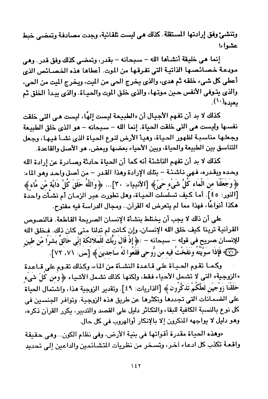 إنما هي خليقة أنشأها الله -سبحانه- بقدر، وتمضي كذلك وفق قدر، وهي مودعة خصائصها الذاتية التي تفرقها من الموت، أعطاها هذه الخصائص الذي أعطى كل شيء خلقه ثم هدى، والذي يخرج الحي من الميت، ويخرج الميت من الحي، والذي يتوفى الأنفس حين موتها، والذي خلق الموت والحياة، والذي يبدأ الخلق ثم يعيده1.