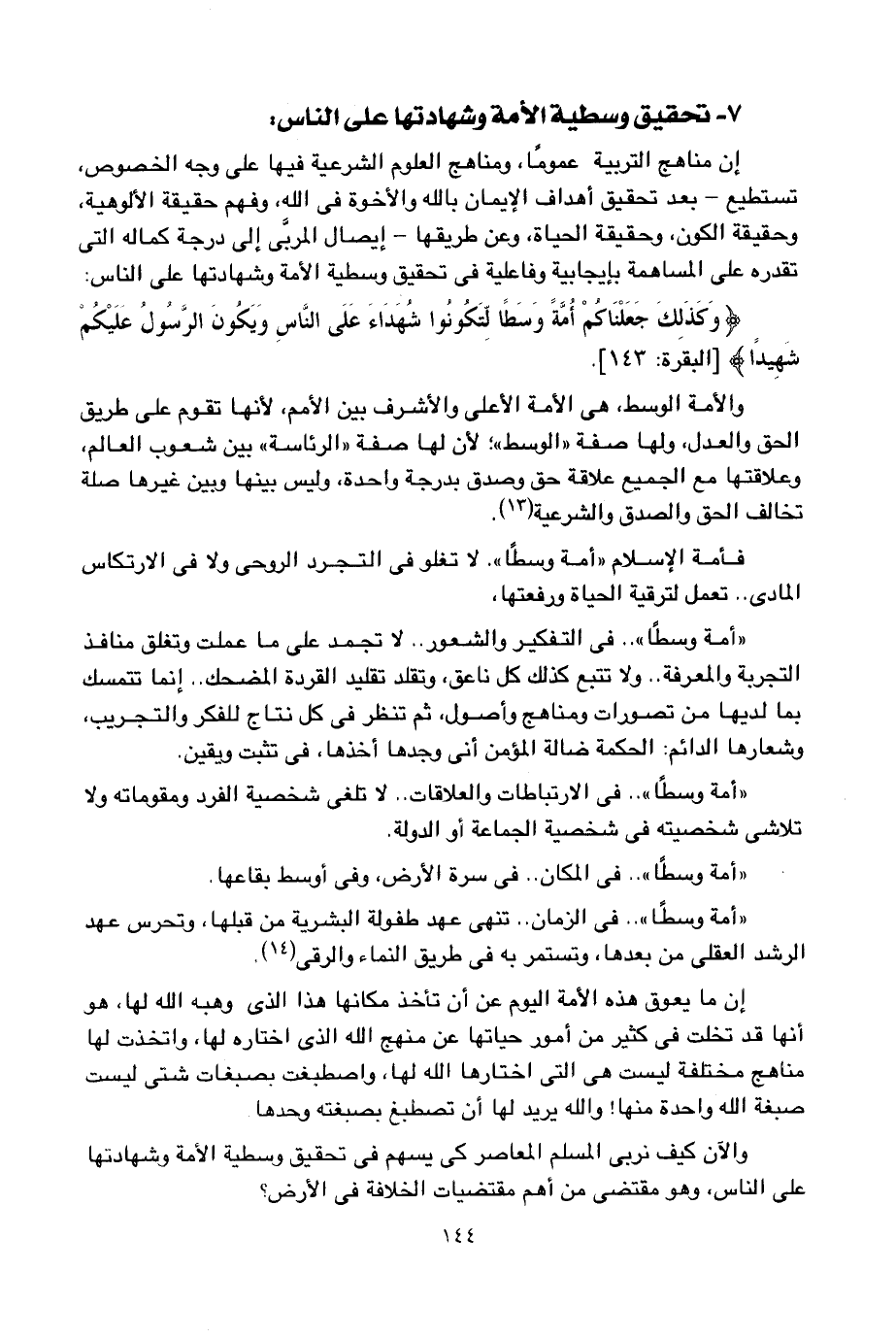 "أمة وسطا".. في الزمان.. تنهي عهد طفولة البشرية من قبلها، وتحرس عهد الرشد العقلي من بعدها، وتستمر به في طريق النماء والرقي2.